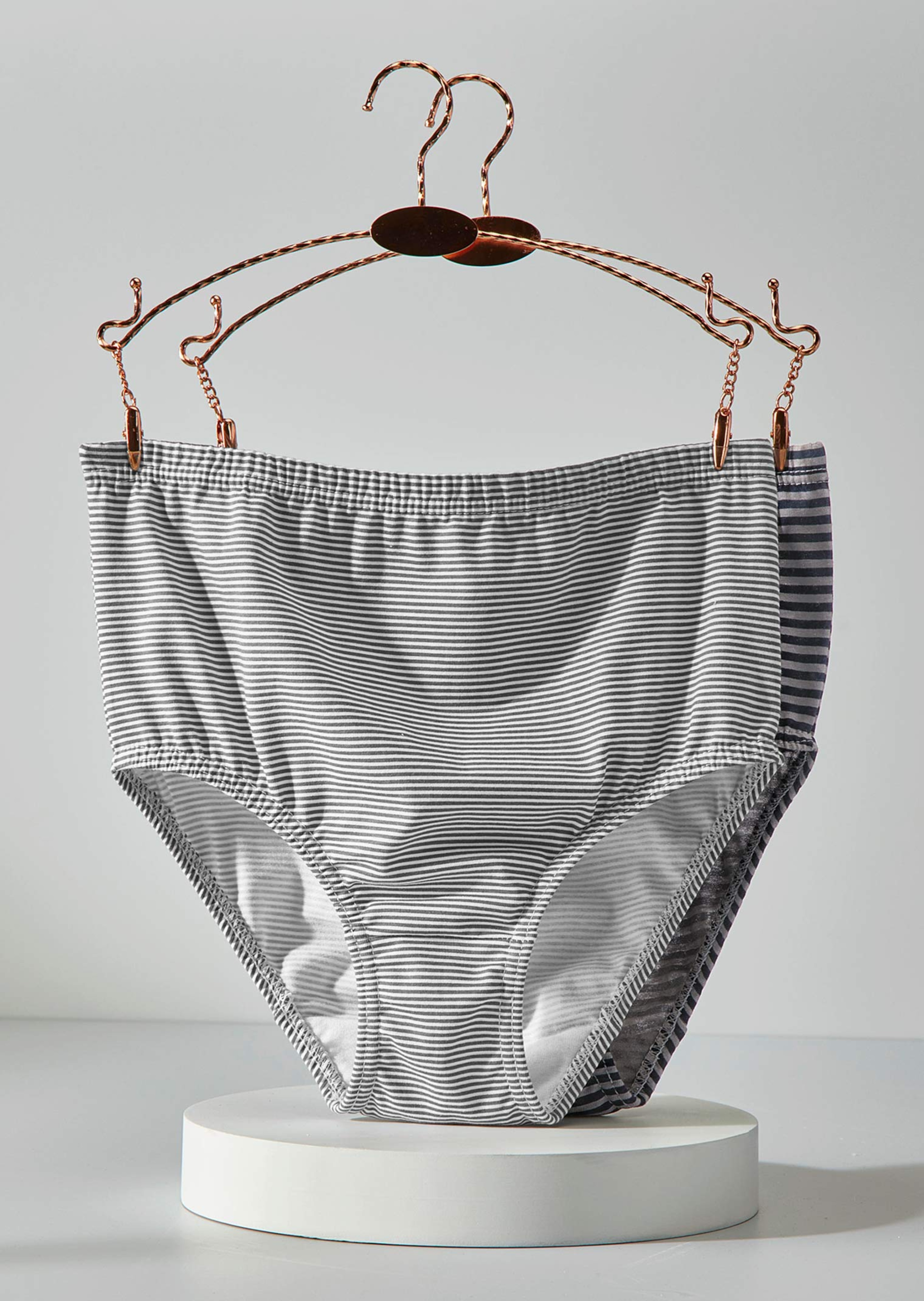 Taillenslip im 7er-Pack – Sie erhalten 3 schwarz-grau-gestreifte, 3 anthrazit-weiß-gestreifte und ein weißes Modell. Optimaler Halt dank angenehmer Passform bis zum Bauchnabel mit sehr breiten Seitenbündchen und geradem Beinausschnitt. Die hautsympathische Baumwollqualität mit Elasthan behält auch nach vielen Wäschen ihre Form. Zwickel doppelt gearbeitet.