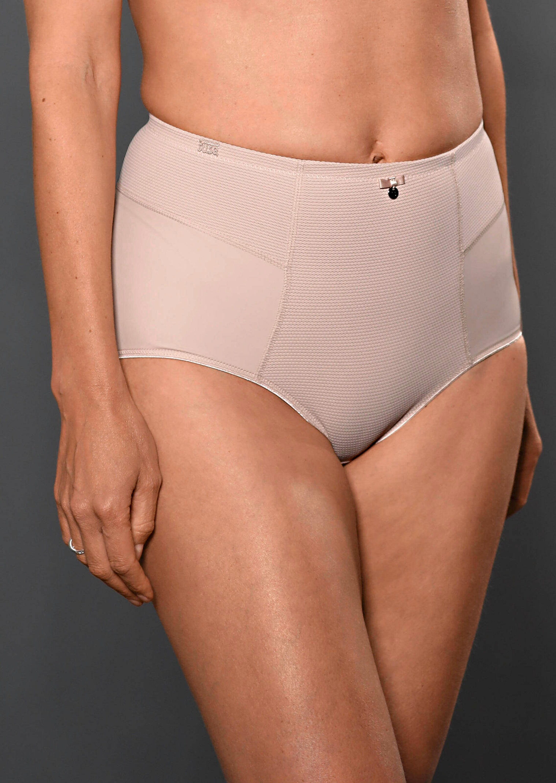Miederslip aus der Serie "Capri" von SUSA. Das leichte Material trägt sich angenehm weich und formt dank des höheren Schnitts mit hinterer Passe eine schöne Silhouette. Das Jacquardmuster und eine Zierschleife sind liebevolle Schmuckdetails. Mit TĂ¼llfutter im Vorderteil und Seitenbereich.