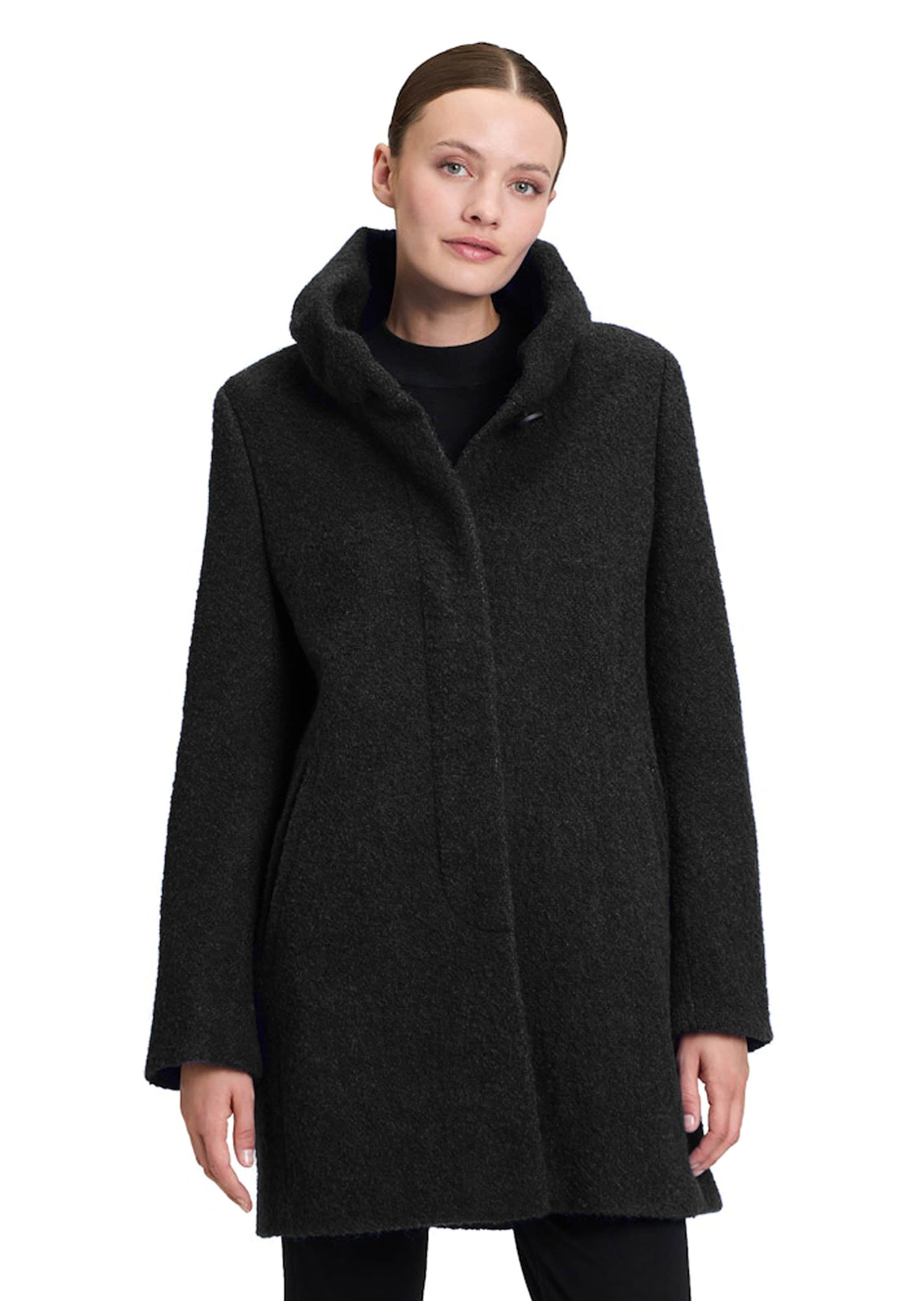Mantel von GIL BRET in leichter A-Linie. Der runde Bubikragen wird mit einem sichtbaren Knopf geschlossen, die Knopfleiste ist fortlaufend verdeckt. Das verleiht dem schlichten Modell Eleganz und Stil. Besonders flauschig zeigt sich der weiche Materialmix mit Wolle, der angenehm wärmt und nicht kratzt. Lange Ärmel mit kleinen abgerundeten Schlitzen und seitiche Eingriffstaschen runden den Look gekonnt ab. Länge ca. 90 cm in Gr. 46.