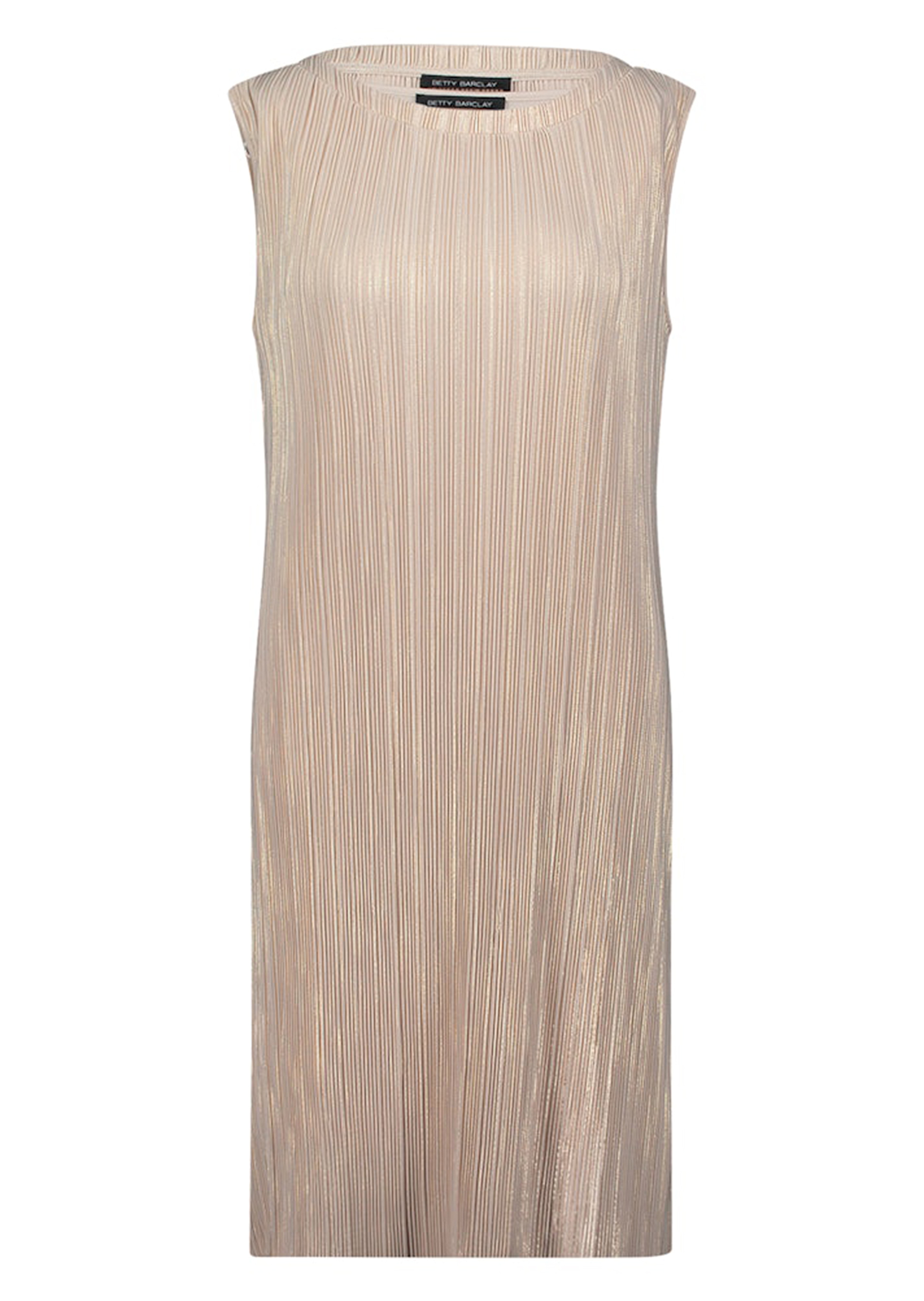 Plisseekleid von BETTY BARCLAY – das perfekte Beispiel dafür, dass ein elegantes Kleid nicht aufwendig sein muss: Das feine, gleichmäßige Plissee ist mit goldfarbenem Glanzgarn durchzogen und schimmert elegant bei jedem Schritt. Der gerade, ärmellose Schnitt mit U-Boot-Ausschnitt und breiter Blende unterstreicht die glanzvolle Wirkung, die offene Saumverarbeitung sorgt für einen weichen Fall. Pflegeleicht und formbeständig begleitet Sie das Modell auf viele besondere Anlässe. Kleines Extra: Das leichte Unterkleid können Sie herausnehmen und nach Belieben unter anderen Kleidern tragen! Länge ca. 103 cm in Gr. 46