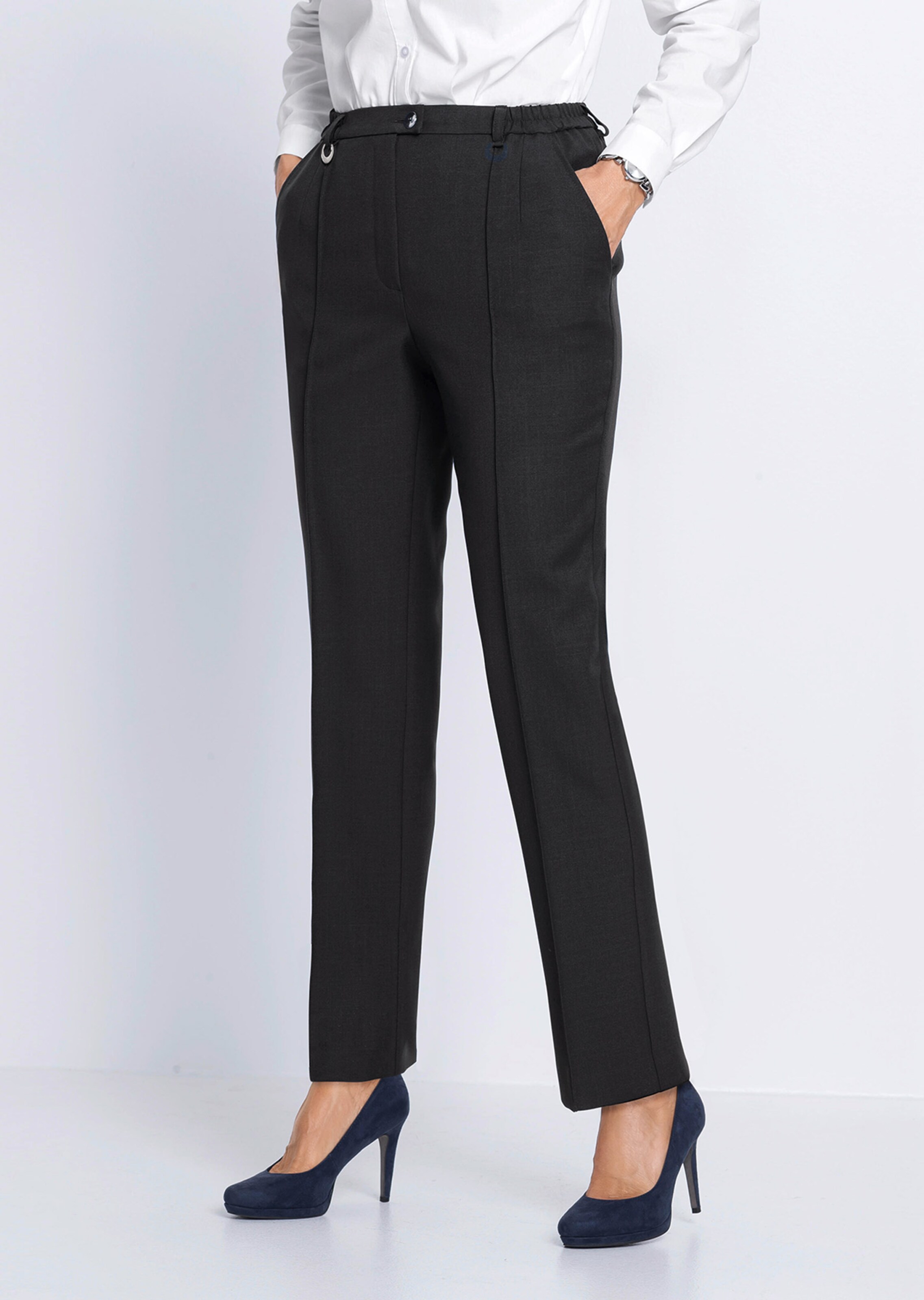Hose im Klassik-Schnitt: Sie verleiht Ihnen dank SilverFresh-Ausrüstung ein dauerhaft gutes Frischegefühl und mit bequemem Teil-Dehnbund. Mit Gürtelschlaufen sowie einem eleganten Zierteil versehen. Abgesteppte Biesen vorn, Bügelfalten hinten und schräge Taschen komplettieren den stilvollen Auftritt. Saumweite ca. 44 cm. Gerade Beinweite.