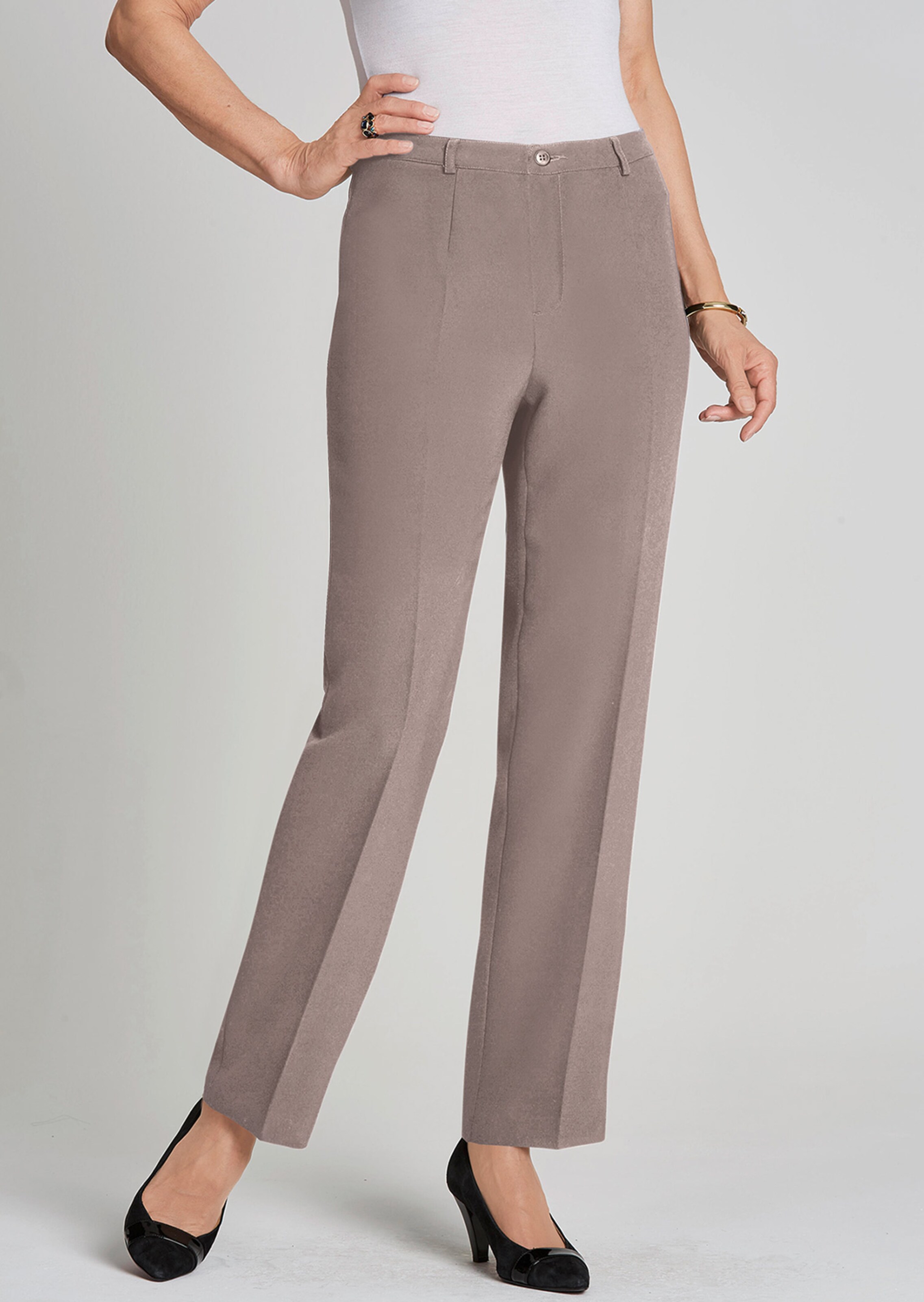 Hose mit zeitloser, gerader Schnittführung und gepflegter Bügelfalte. Formgebende, kaschierende Abnäher auf der Rückseite sorgen für eine schöne Silhouette. Der Formbund trägt nicht auf und ist mit Gürtelschlaufen gearbeitet. In knitterarmer, pflegeleichter und bi-elastischer Qualität – ein vielseitiger Kombipartner mit vollendetem Tragekomfort. Saumweite ca. 45 cm. Gerade Beinweite.