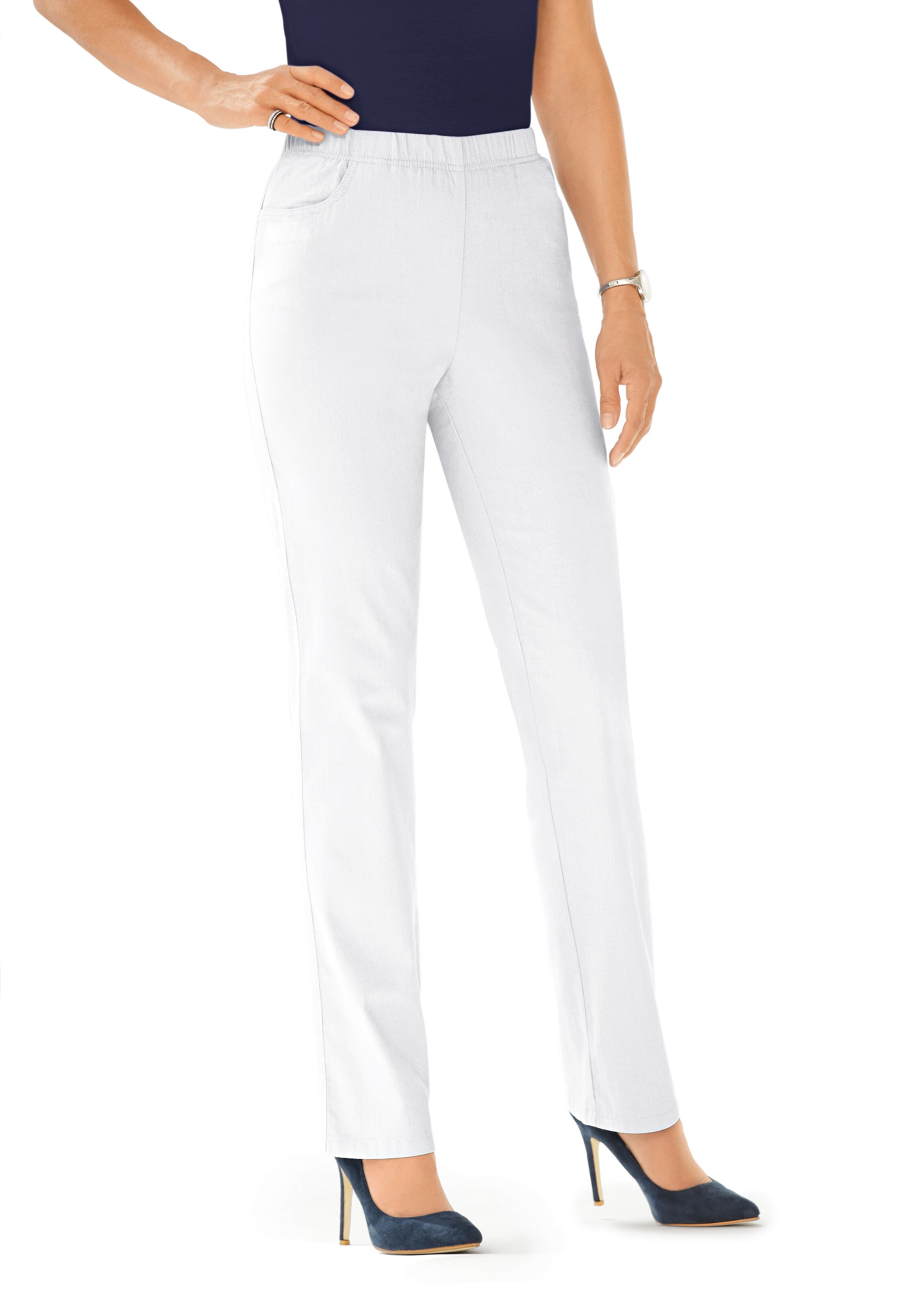Jeansschlupfhose in superbequemer Qualität. Das gepflegte Modell ist dank Elasthananteil äußerst angenehm zu tragen. Auch der bequeme Rundum-Dehnbund garantiert zu jeder Zeit höchsten Komfort. Diese Hose ist ideal für alle Freizeit- und Urlaubsaktivitäten. Die abgerundeten Taschen komplettieren das stilvolle Gesamtbild. Und darüber hinaus dürfen Sie den pflegeleichten Begleiter ganz unkompliziert in der Maschine waschen. Rundum gelungen! Saumweite ca. 42 cm. Gerade Beinweite.