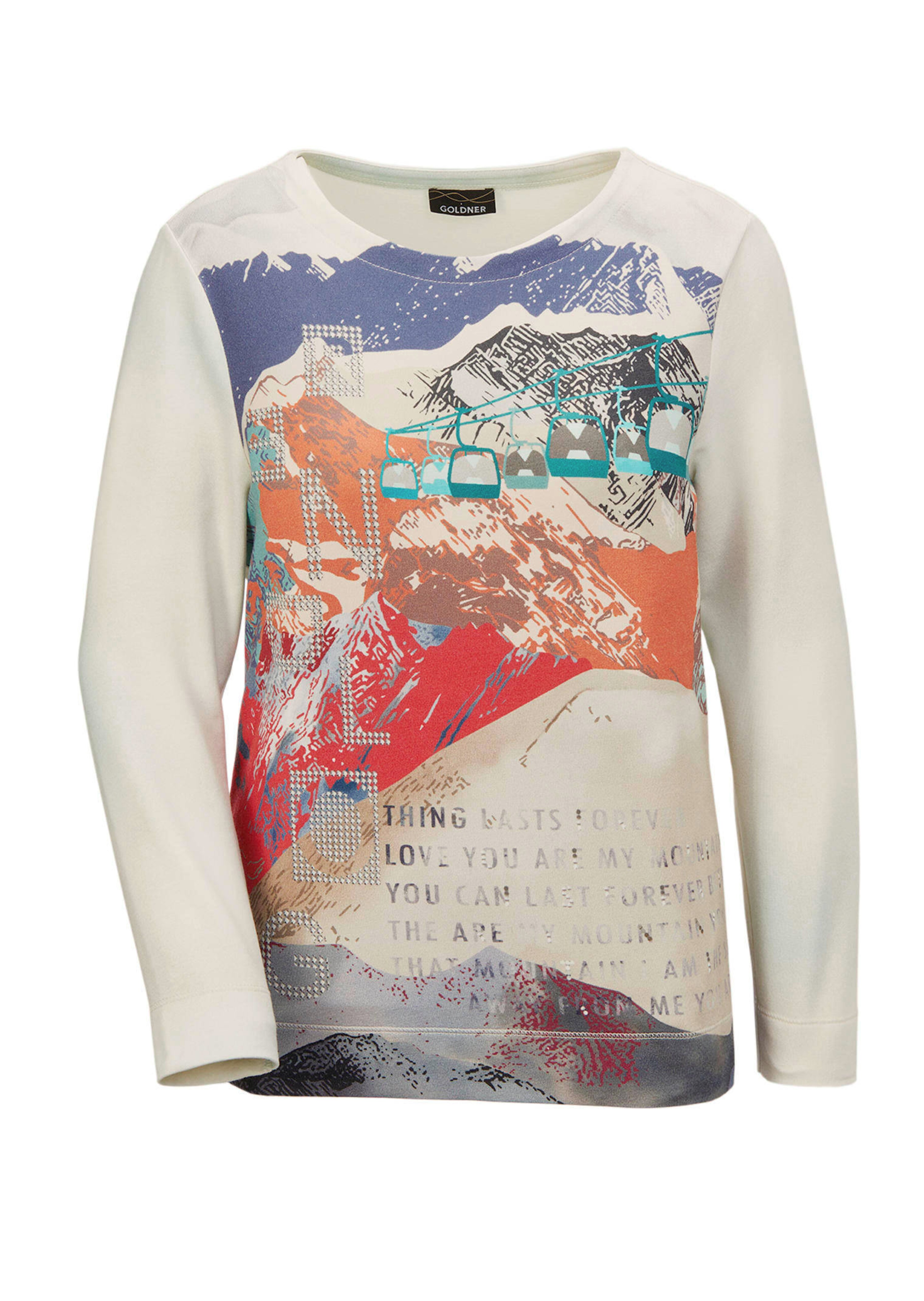 Druckshirt im exklusiven Design von GOLDNER! Ein aufwendiger Druck lässt das Modell in modischer Sweatshirtform zu einem beliebten Kombipartner werden. Mit fein gearbeitetem Rundhalsausschnitt und breiten Säumen. Die weiche Interlock-Jerseyware mit hochwertiger Viskose sorgt für besten Komfort. Länge ca. 66 cm in Gr. 46, ca. 62 cm in Gr. 23.