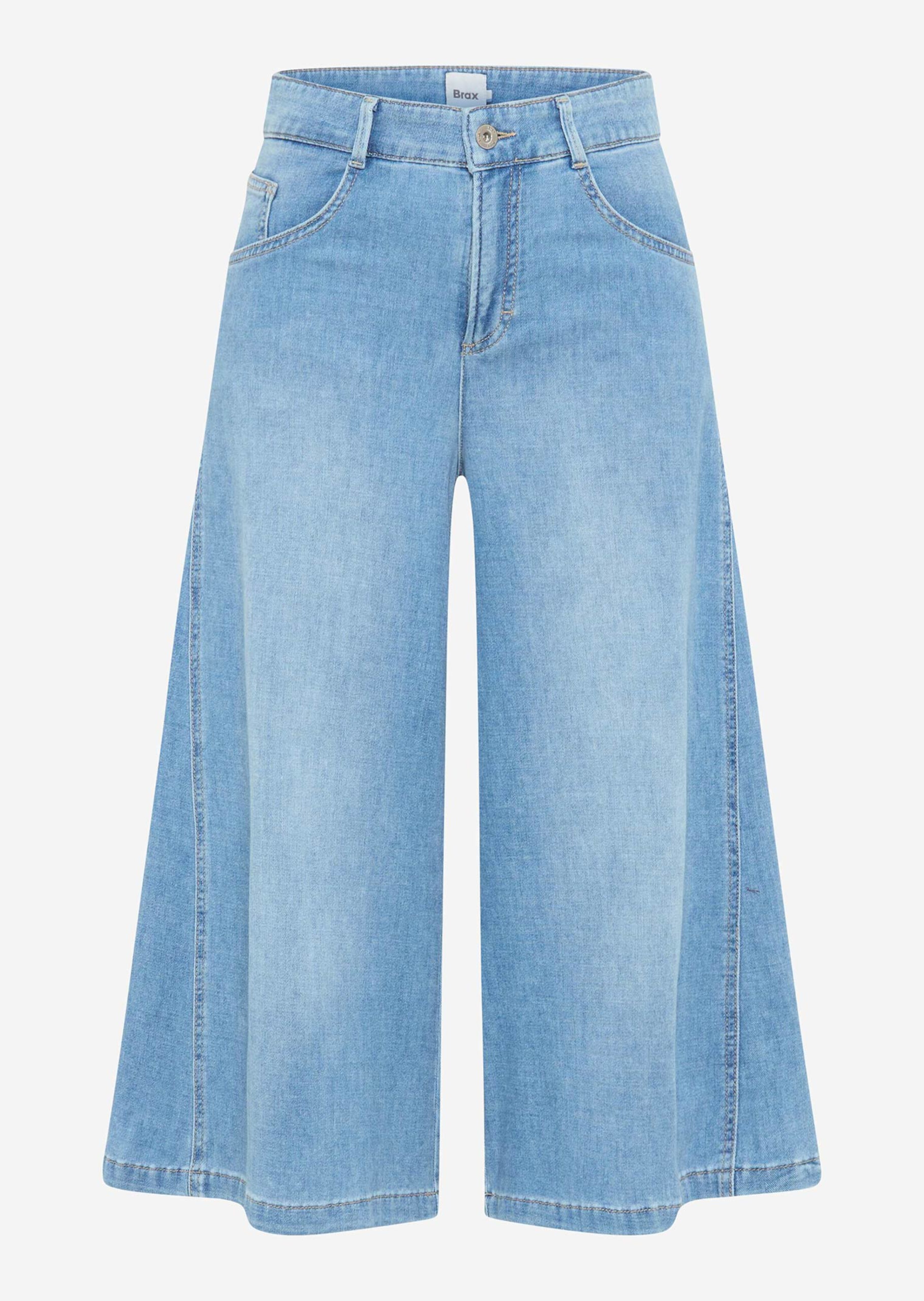 Hosenrock von BRAX in sommerlich leichter Denim-Qualität mit angenehm weichem Griff. Die Culotte-Form mit weitem Beinverlauf verbindet die feminine Optik eines Rocks mit der Bewegungsfreiheit einer Hose. Sitzt wunderbar bequem dank leicht elastischem Formbund. Mit 5-Pocket-Anordnung und heller Waschung für den sportiven Look. Ein vielseitiger Kombi-Partner – topmodisch und zugleich zeitlos. Saumweite ca. 97 cm in Gr. 46.
