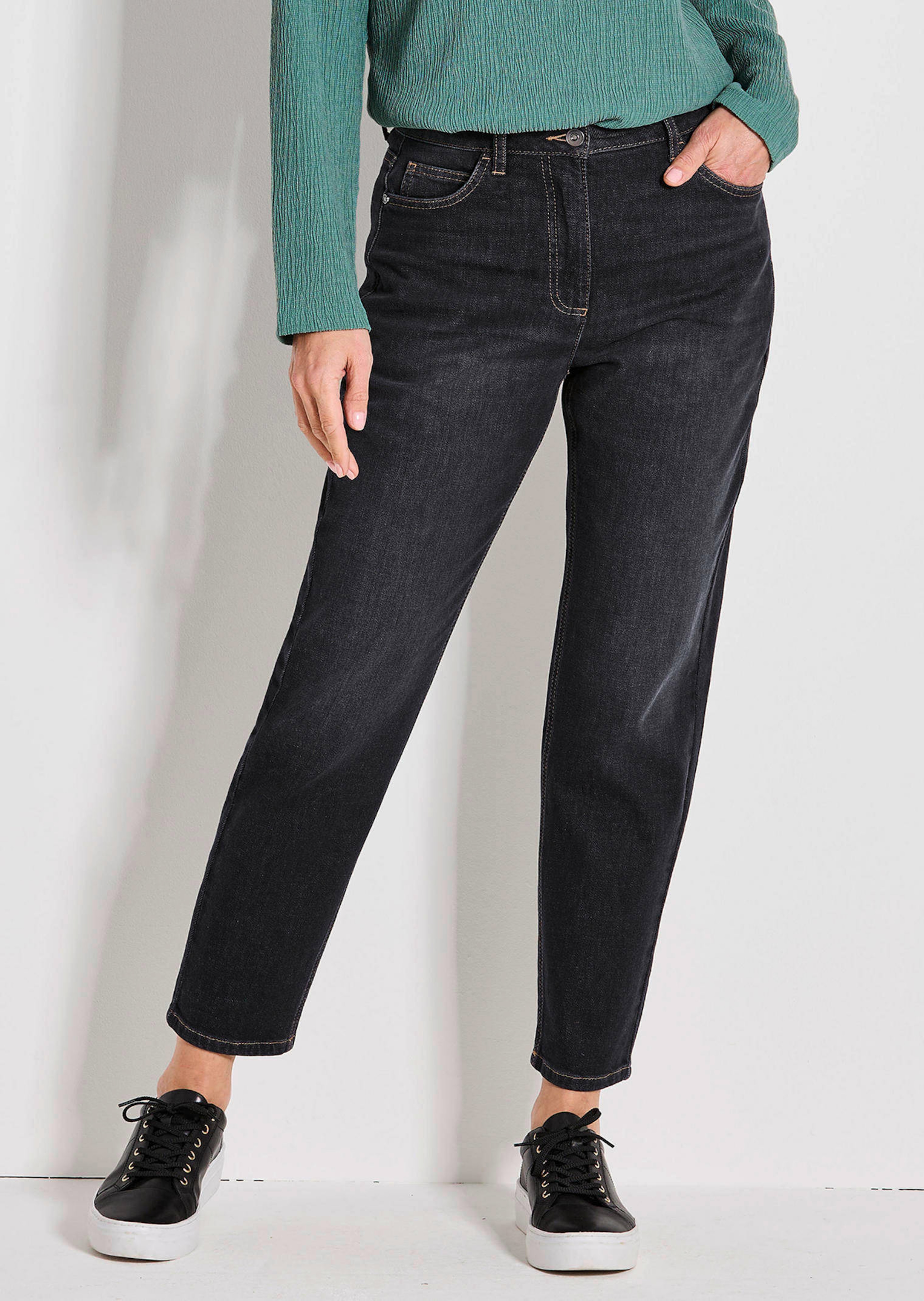Jeanshose SARA mit Formbund und Gürtelschlaufen. Mit Knopf und Reißverschluss zu schließen. Die klassische 5-Pocket-Form, die modische Waschung und die abgesteppten Kontrastnähte verleihen dem Modell einen frischen Look. Dank rückwärtigem Sattel sitzt die Hose auch in der Taille perfekt, der legere Schnitt bietet Bauch und Oberschenkeln optimalen Komfort. Aus weicher Jeans-Qualität mit Stretchanteil. Saumweite: ca. 37 cm. Konischer Beinverlauf.