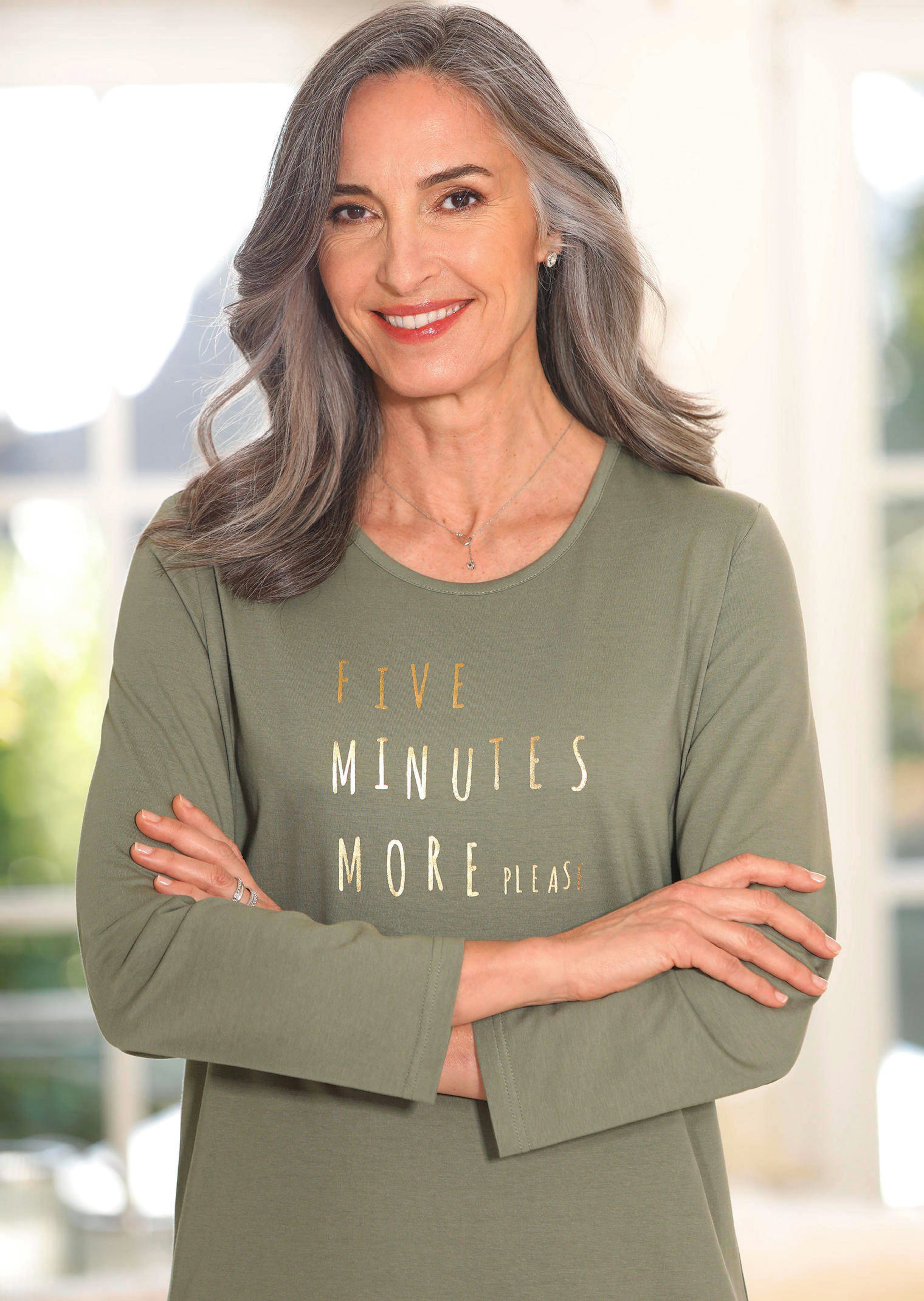 Nachthemden im 2er-Pack, die sich farblich perfekt ergänzen. Der goldfarbene Schriftzug im Vorderteil und der Innenbeleg im Streifendessin setzen optische Akzente. Für optimalen Tragekomfort sorgt der angenehm weiche Single Jersey aus reiner Baumwolle. Mit langen Ärmeln und Rundhalsausschnitt. Ein Doppelpack zum besten Preis!