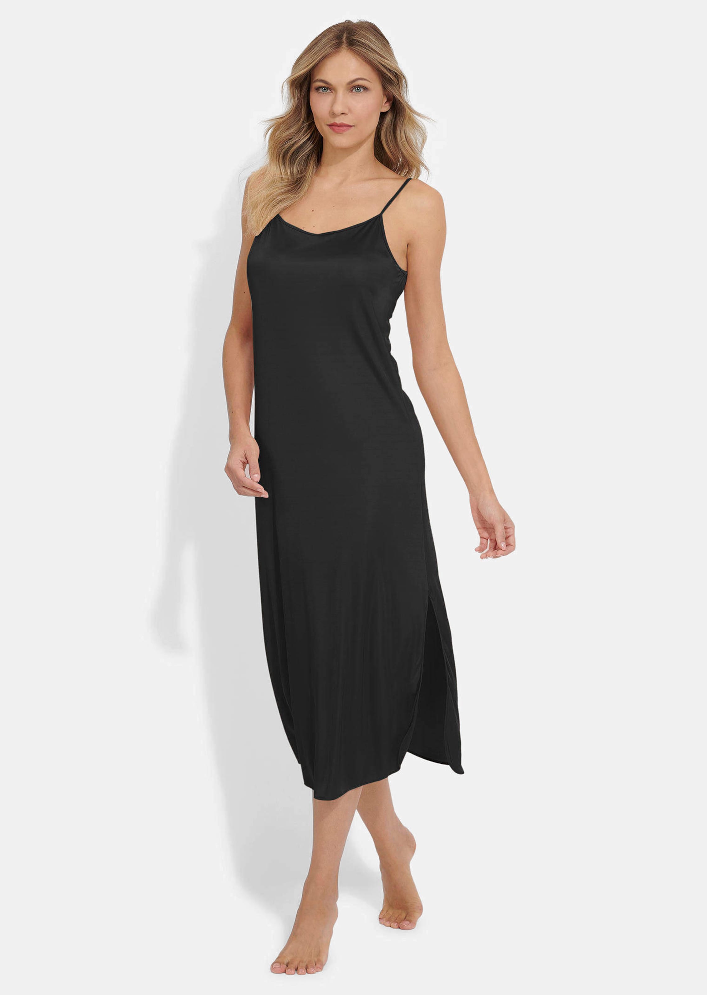 Das Negligé von NINA VON C. schmiegt sich mit seiner fließenden Silhouette und den verstellbaren Spaghettiträgern sanft an den Körper. Der seitliche Schlitz verleiht dezente Raffinesse, während das Material weich und leicht fallend auf der Haut liegt. Pflegeleicht und elegant, sodass Sie es auch als Unterkleid tragen können.