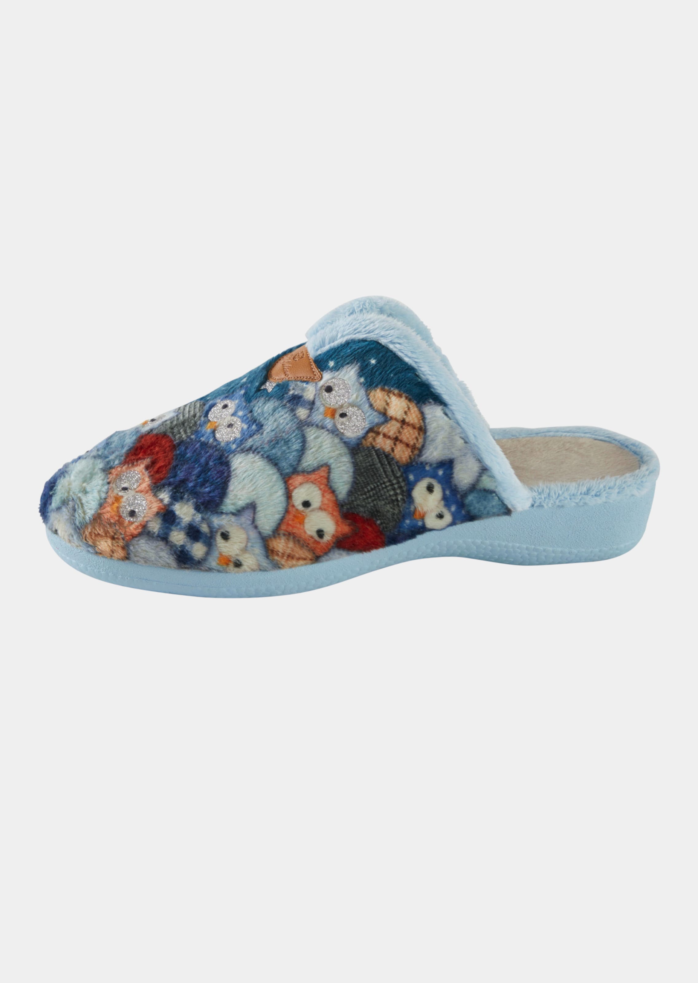 Pantoffel in G-Weite in fröhlichem Dessin: Das samtige Plüsch-Obermaterial begeistert mit einem niedlichen Eulen-Druck, der durch funkelnde Glitzerdetails zum Blickfang wird. Die rutschsichere Laufsohle aus echtem Kautschuk sorgt für sicheren Halt auf allen Böden. Ein praktischer Wohlfühl-Hausschuh, der Sie verzaubern wird!