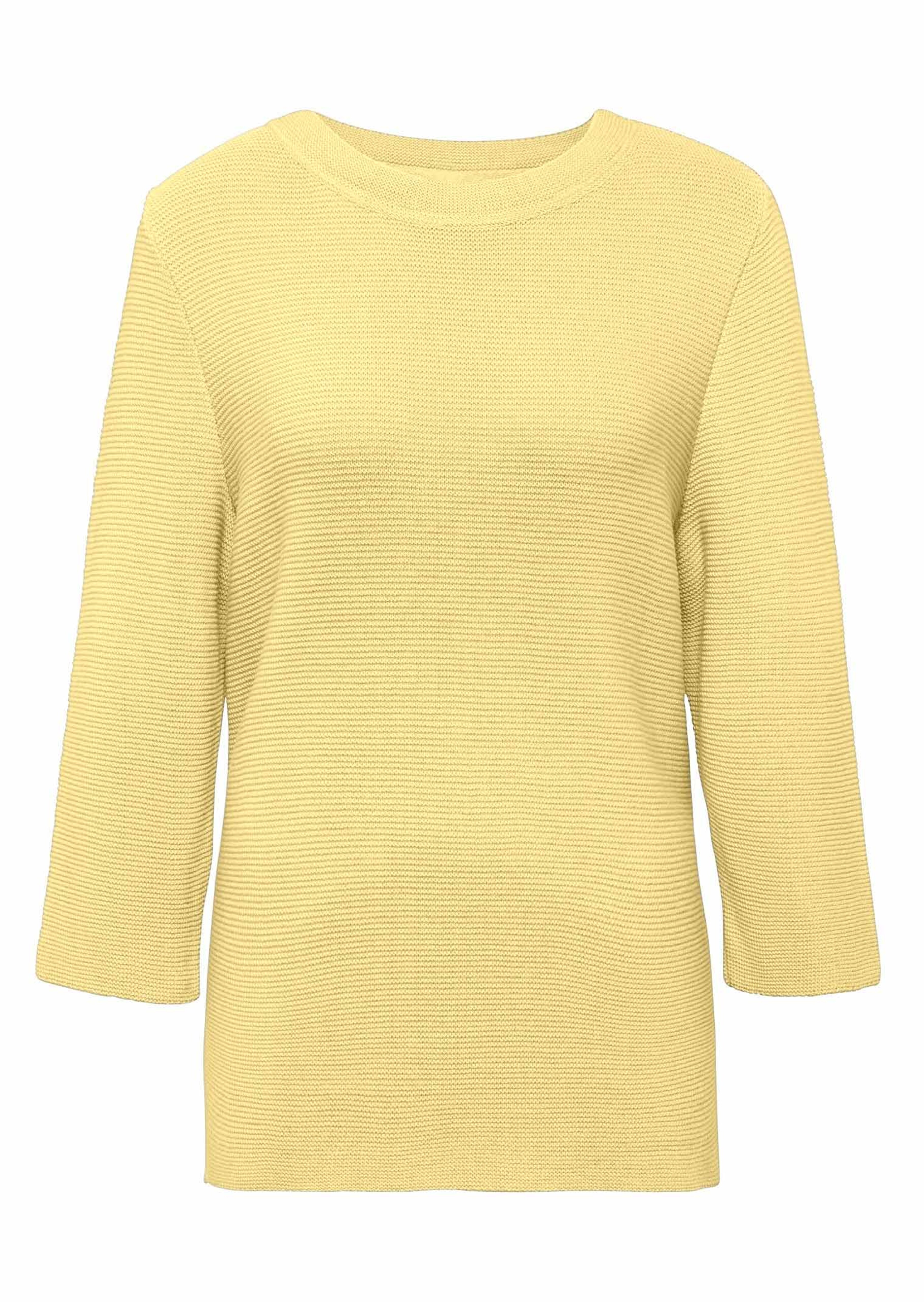 Pullover mit modischen 3/4-langen Ärmeln. Gearbeitet in einer wunderschönen Links-Links-Stricktechnik für eine effektvolle Optik. Das hochwertige Garn aus Italien und ein hoher Modalanteil verleihen dem hübschen Modell einen besonderen Tragekomfort – ganz ohne Kratzen. Mit einem supersoften, kaschmirähnlichen Griff. Dieser rundum gelungene Kombipartner ist ein absoluter Favorit für die neue Saison! Länge ca. 67 cm in Gr. 46, ca. 63 cm in Gr. 23.