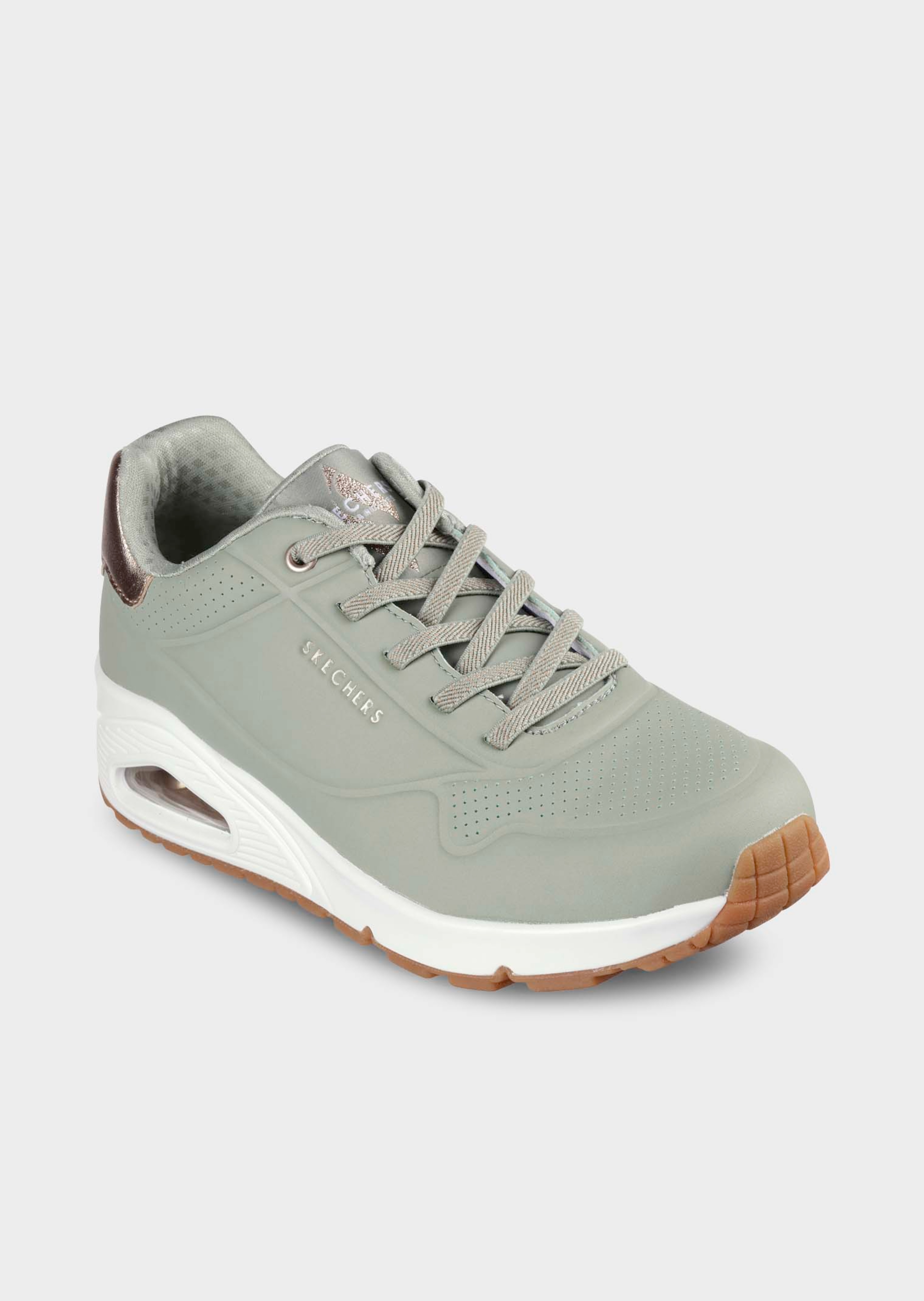 Sneaker mit praktischer Bungee Schnürung – kein Binden nötig, einfach reinschlüpfen und loslaufen! Dank der Air-Cooled-Funktion bietet der Schuh ein angenehmes Fußklima. Die auswechselbare Memory-Foam-Innensohle passt sich dem Fuß perfekt an. Mit Skech-Air-Luftkissen in der Laufsohle für sanfte Dämpfung und rutschfester Gummi-Laufsohle.
