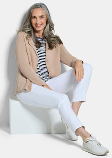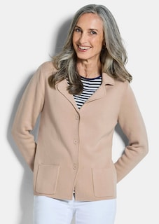 Strickblazer aus einer pflegeleichten Baumwollmischqualität. Der dicht gestrickte Milano-Ripp macht das Modell formstabil und trageangenehm. Mit Reverskragen, tonigen Knöpfen und aufgesetzten Taschen. Schmale Blenden an der vorderen Kante und flache Abschlüsse sorgen für eine gepflegte Silhouette. Tragen Sie diesen Blazer zu eleganten Ensembles oder sportiv zu Jeans und Shirt! Länge ca. 67 cm in Gr. 46, ca. 63 cm in Gr. 23.