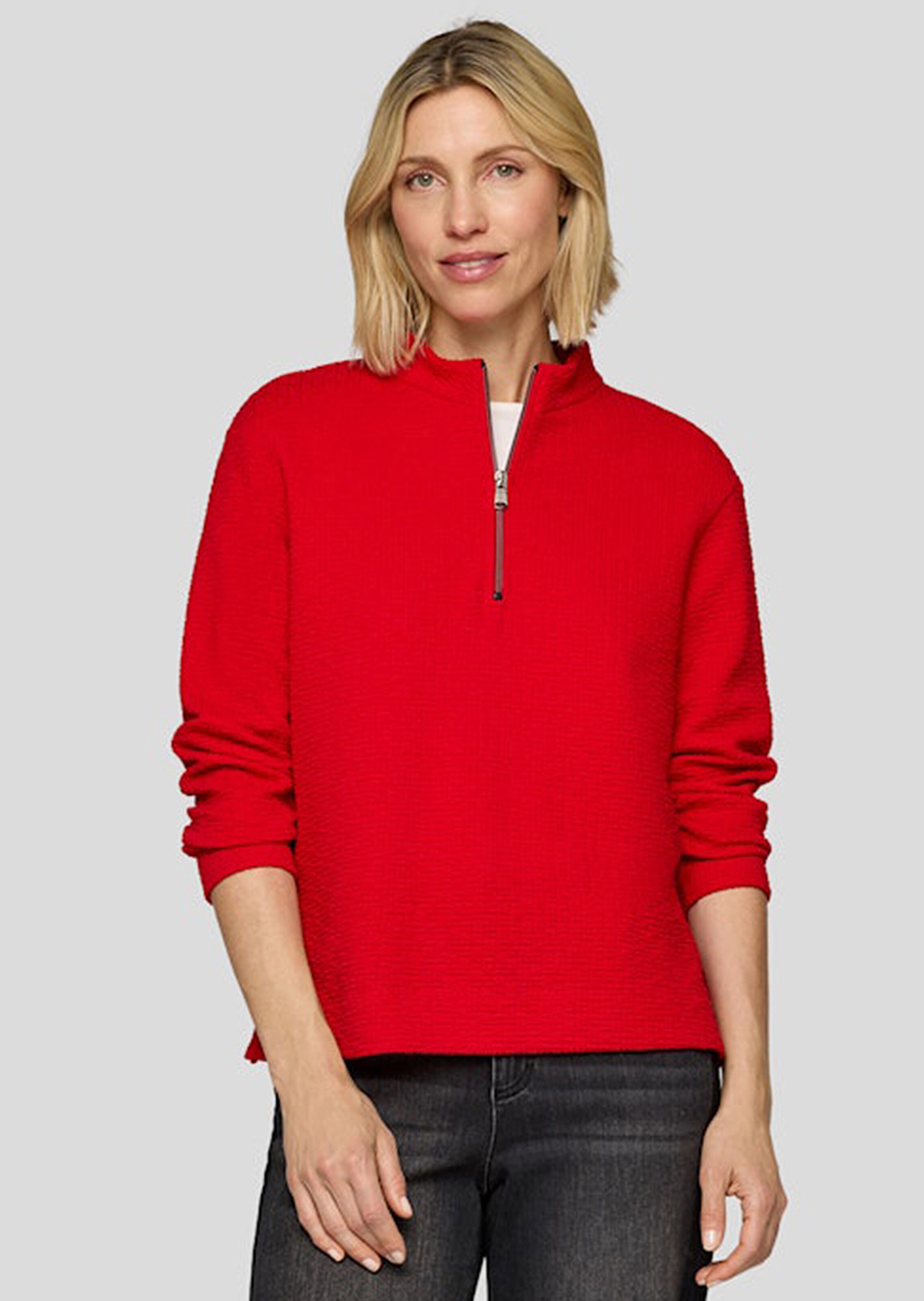 Strukturshirt von RABE in zeitlos-klassischer Farbgebung. Die strukturierte Oberfläche verleiht dem Modell eine spannende Optik, die weiche Qualität mit Baumwolle ist pflegeleicht und knittert nicht. In gerader Passform mit breiter Saumblende und Seitenschlitzen. Der schmale Stehkragen ist mit einem Reißverschluss gearbeitet, lange Ärmel wärmen auch an kalten Tagen. Länge ca. 64 cm in Gr. 46.
