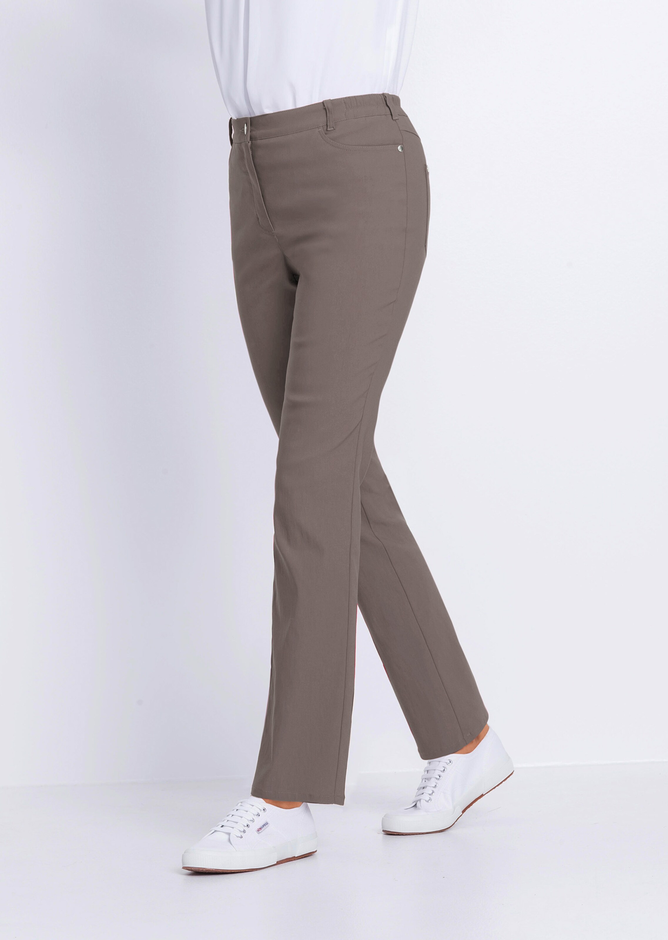 Super-Stretch-Hose sitzt absolut perfekt: Nichts kneift oder engt ein. Macht durch den Super-Stretch-Effekt der innovativen Materialzusammensetzung jede Bewegung mit, ist knitterarm, koffertauglich und pflegeleicht. Bequemer Dehnbund mit angepasster Taillenweite für erstklassigen Tragekomfort. Vorne mit Reißverschluss und Knopf zu schließen. Saumweite ca. 42 cm. Gerade Beinweite.