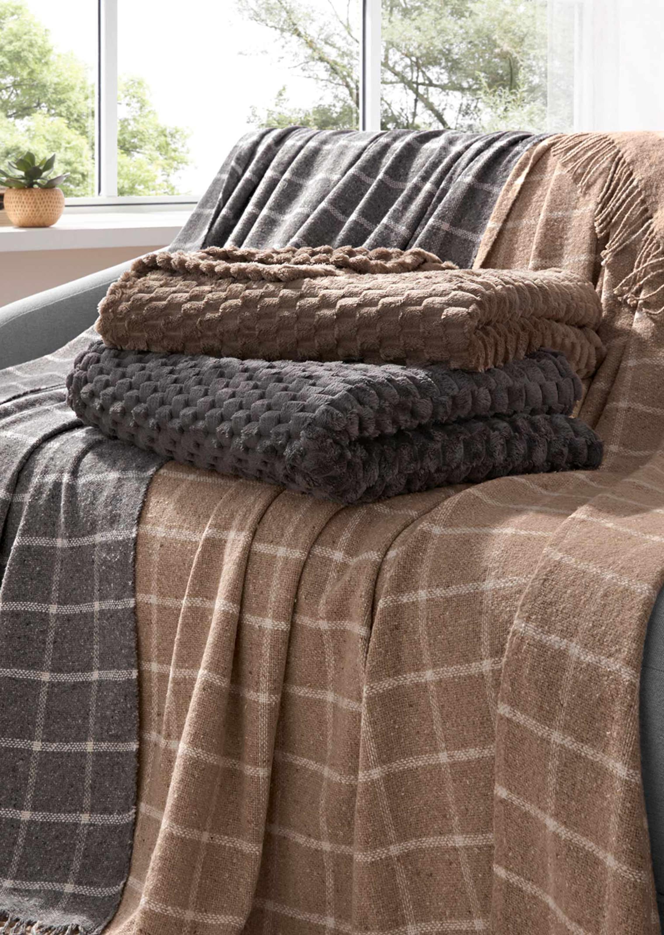Wohndecke in raffinierter Jacquard-Optik mit 3D-Effekt. Damit schaffen Sie ein echtes Highlight in Ihrem Wohnbereich. Die Decke ist aus kuschelweicher Mikrofaser und hüllt Sie supersoft ein. Waschbar bei 30°C im Schonwaschgang und trocknergeeignet.