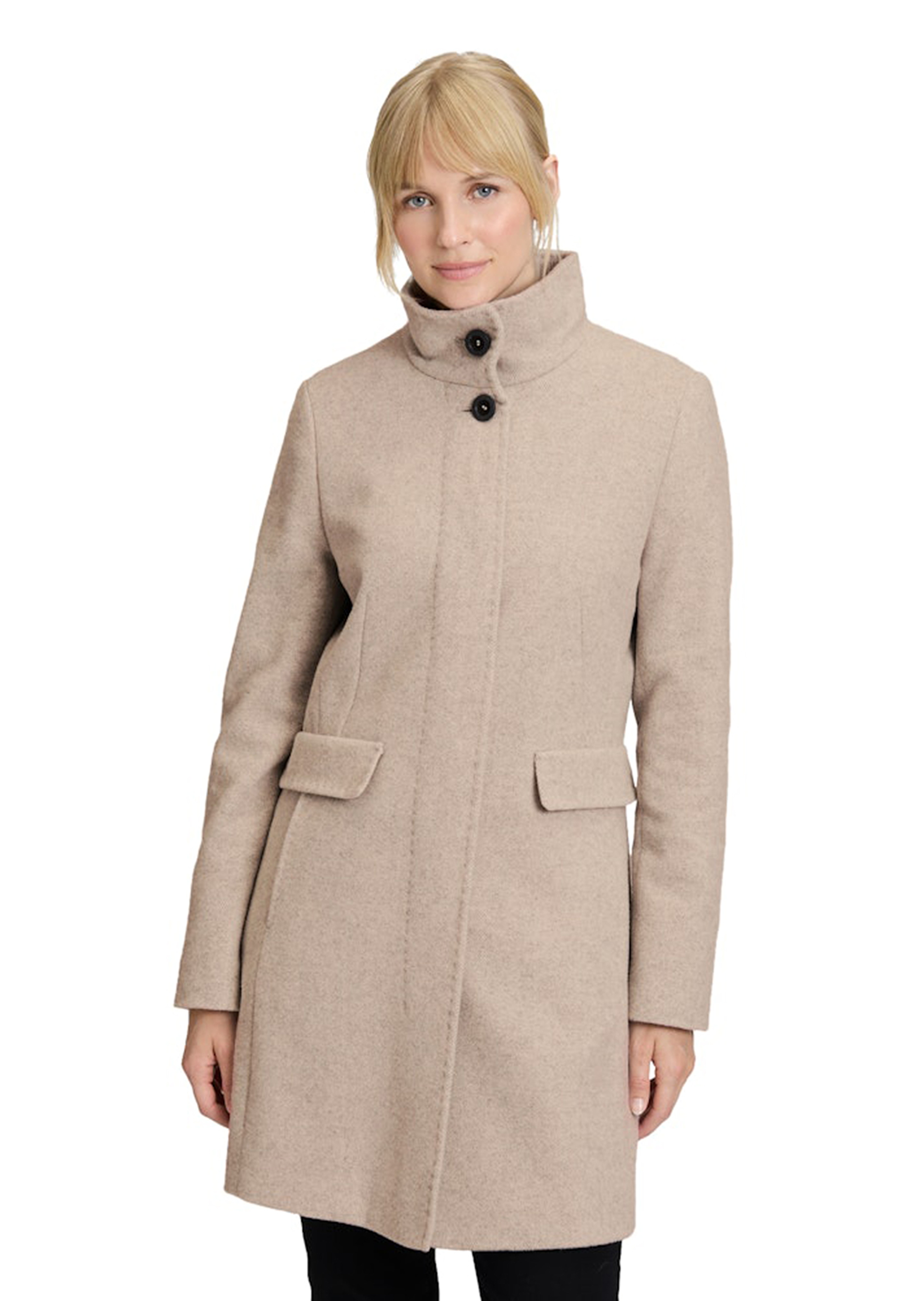 Wollmantel von GIL BRET in farbharmonischem Fischgrat-Muster. Das hochwertig verarbeitete Modell mit Teilungsnähten schenkt Ihnen eine feminine Silhouette. Die weiche Wollmischung "made in Italy" kratzt nicht und wärmt angenehm an kalten Tagen. Stehkragen und verdeckte Knopfleiste verleihen dem Mantel schlichte Eleganz. Mit Dekopatten über den seitlichen Eingriffstaschen und Zierknöpfen am Ärmelsaum. Länge ca. 90 cm in Gr. 46.