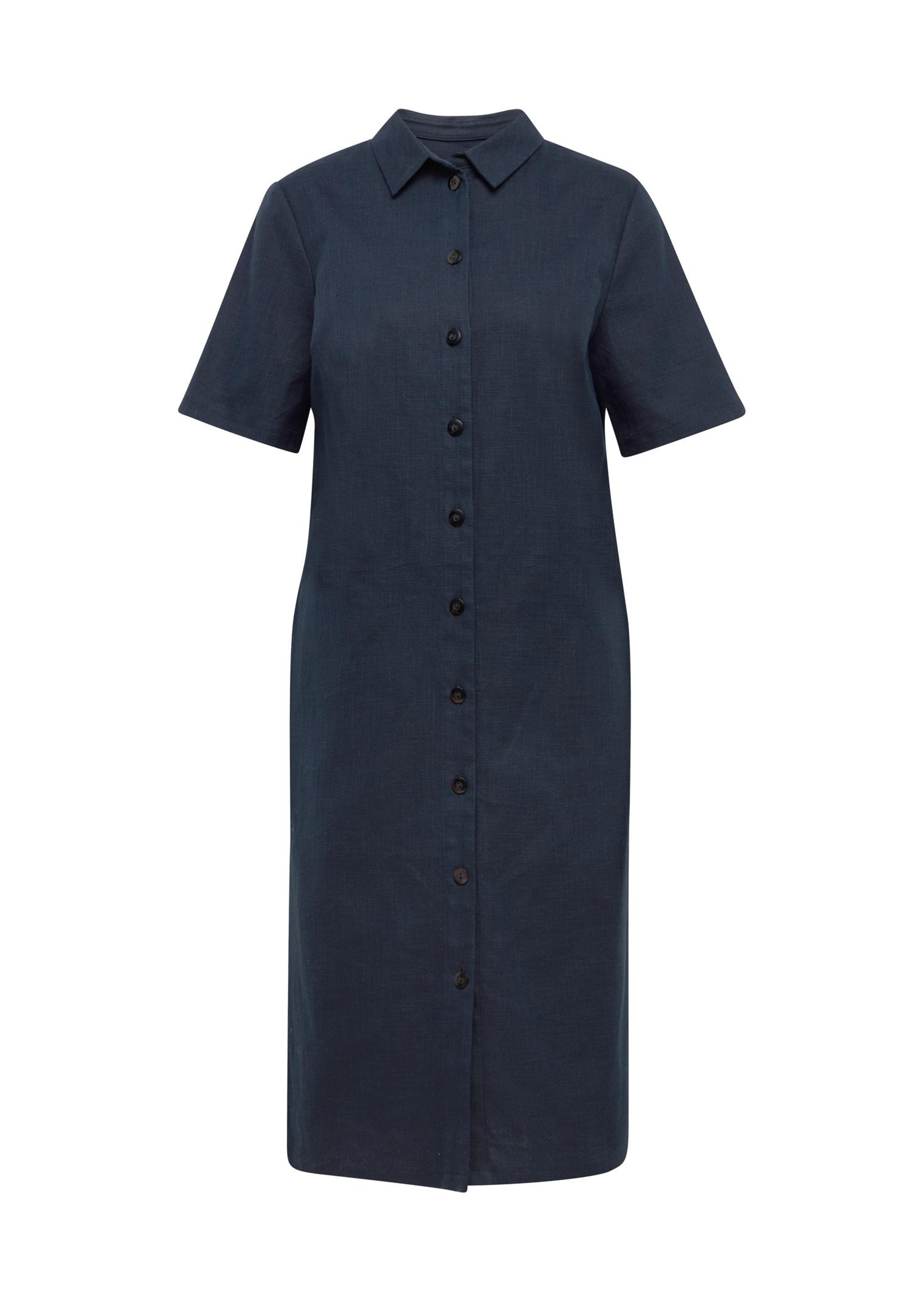 Kleid in herrlich bequemer Passform. Die hochwertige, leichte Materialkombination mit Leinenanteil verhindert Knittern und sorgt dabei für ein erstklassiges Tragegefühl. Mit halblangen Ärmeln gearbeitet, durchgehender Knopfleiste, zwei Eingrifftaschen und einer Falte im Rücken für eine bequeme Weite. Länge ca. 102 cm in Gr. 46, ca. 96 cm in Gr. 23.