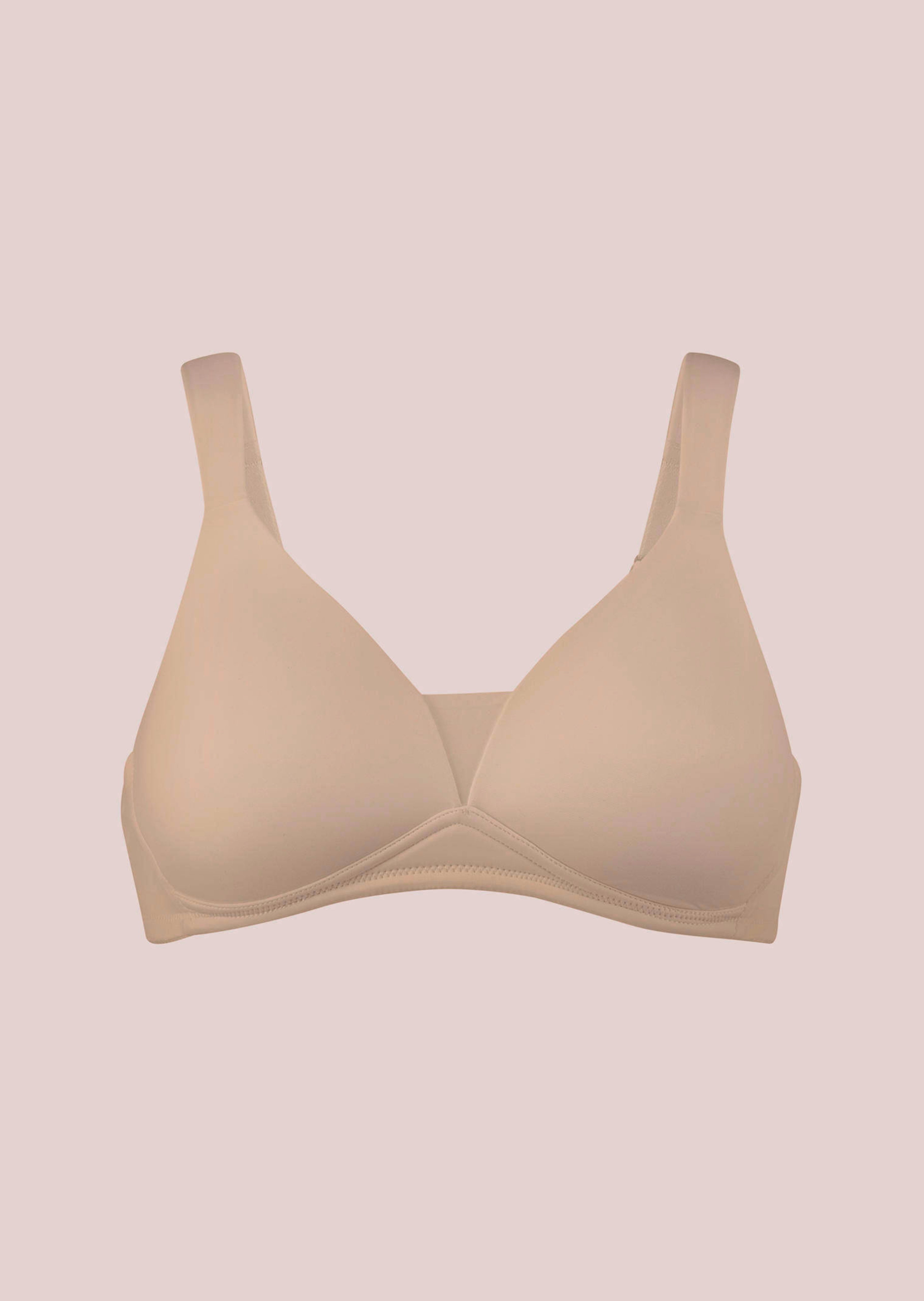 BH zonder beugels met zachte cups van VIANIA. Voorgevormde cups zorgen voor een mooie pasvorm. Een decoratieve ring middenvoor dient als blikvanger. Brede, verstelbare, comfortabele schouderbandjes zorgen voor uitstekend comfort, ook bij grote maten. Zacht en comfortabel, in een aangename materiaalmix.