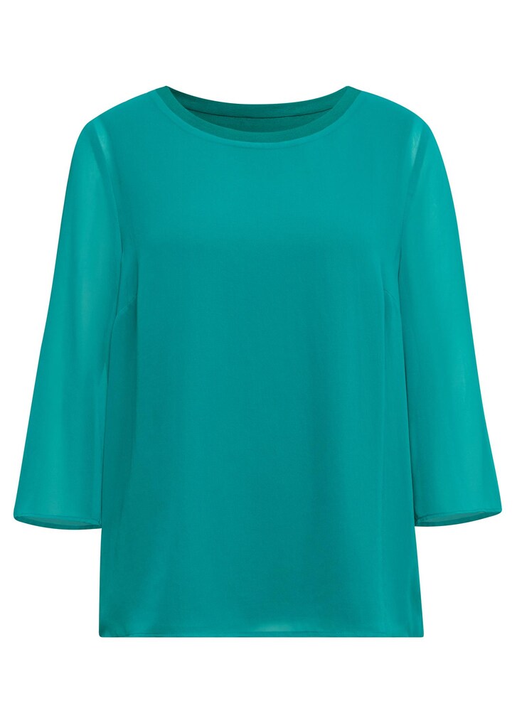 Blouseshirt in twee lagen – uw verfijnde en praktische metgezel in 2-in-1-look. De zoektocht naar geschikte onderkleding stopt hier, want het jersey topje is ingenaaid. Het zit dus altijd perfect en maakt de transparante blouse van chiffon bijna ondoorzichtig. U zult onder de indruk zijn van de zeer mooie, casual oversized look met ronde hals en 3/4-mouwen. Het blouseshirt is heel onderhoudsvriendelijk en gemakkelijk te combineren, een absolute GOLDNER-favoriet! Lengte ca. 66 cm in maat 46, ca. 62 cm in maat 23.