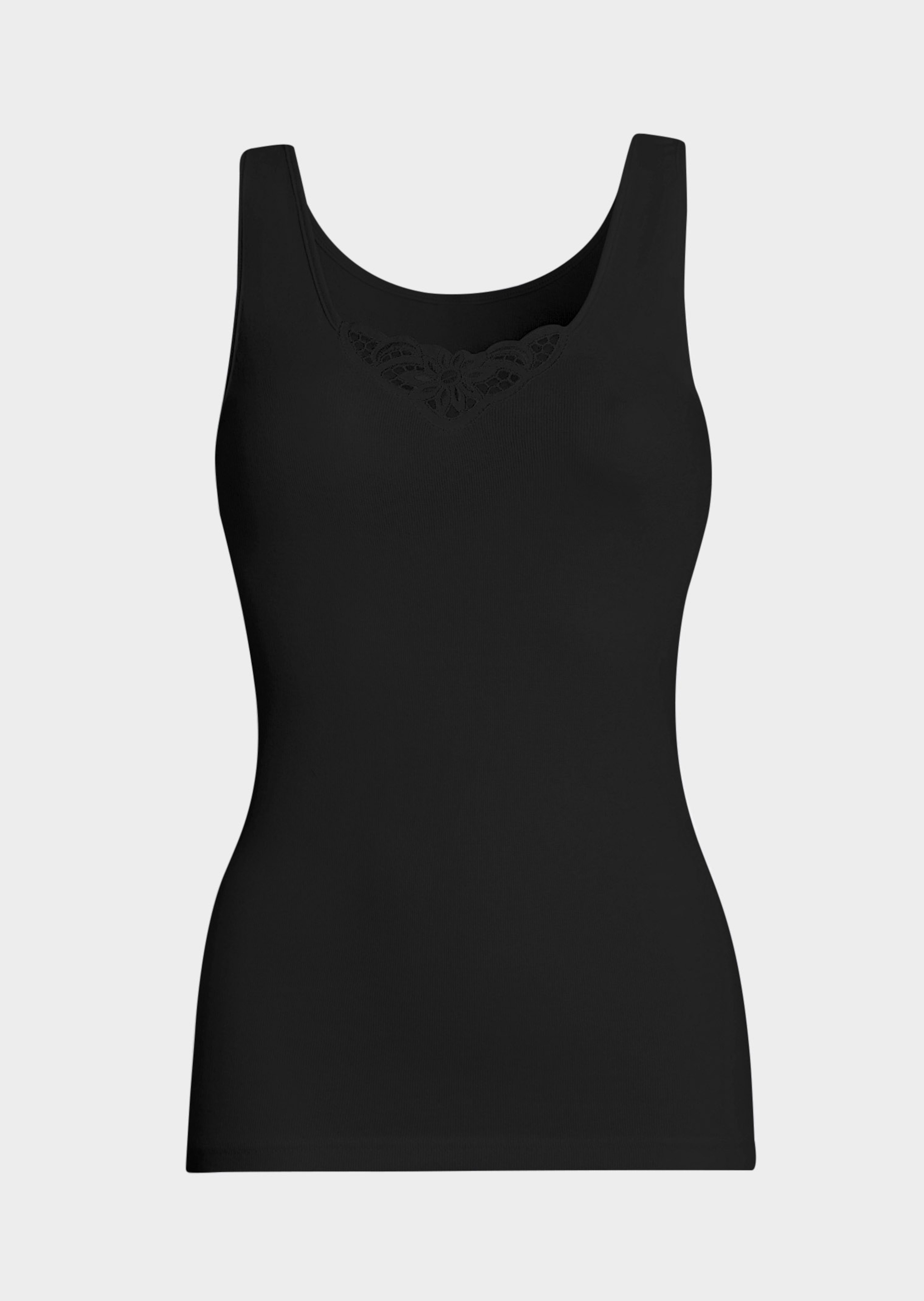 Drie hemden van CON-TA, met gebloemd batistmotief bij de hals als elegant accent. De hoogwaardige, dichte fijnrib van zuiver, supergekamd katoen is heerlijk zacht in het dragen, is actief ademend en blijft ook na vaak wassen mooi in model. Naadloze afwerking voor een soepel gevoel, als een tweede huid. Randen omboord met singleboord.
