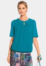 Blouseshirt in stijlvolle materiaalmix. Het voorpand is dubbellaags met fijn chiffon verwerkt voor een mooie val. De achterkant is gemaakt van huidvriendelijke jersey van viscose en Elastan. Vrouwelijke ronde hals met strook en sierdetail. Met bandje in de zoom voor een mooi en figuurvriendelijk effect. Met korte mouwen. Lengte ca. 65 cm in maat 46, ca. 61 cm in maat 23.