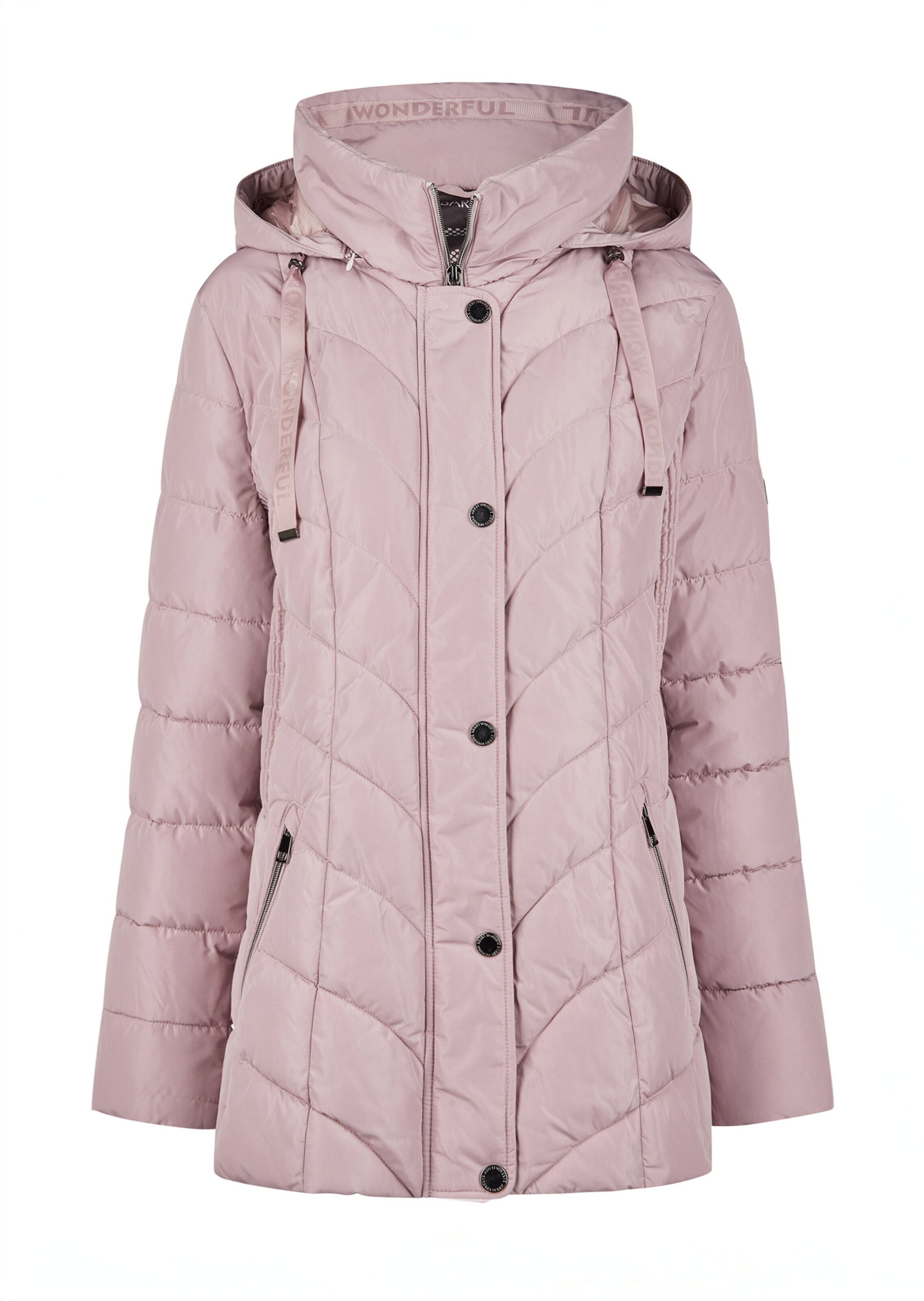 Gewatteerd jack met capuchon van BARBARA LEBEK van actief ademend, winddicht en waterafstotend materiaal. Dankzij de dikke, donsvrije wattering is dit jack een betrouwbare metgezel onder alle weersomstandigheden! Een ritssluiting met drukknopenlijst zorgt voor extra bescherming en de opstaande kraag met een afneembare capuchon houdt uw hals warm. De modieuze wattering met comfortabel elastische smoke-inzetten opzij maakt van het jack een blikvanger! Met twee zakken met ritssluiting, een zakje in de voering en antraciet-zilverkleurige drukknopen. Lengte ca. 74 cm in maat 46.