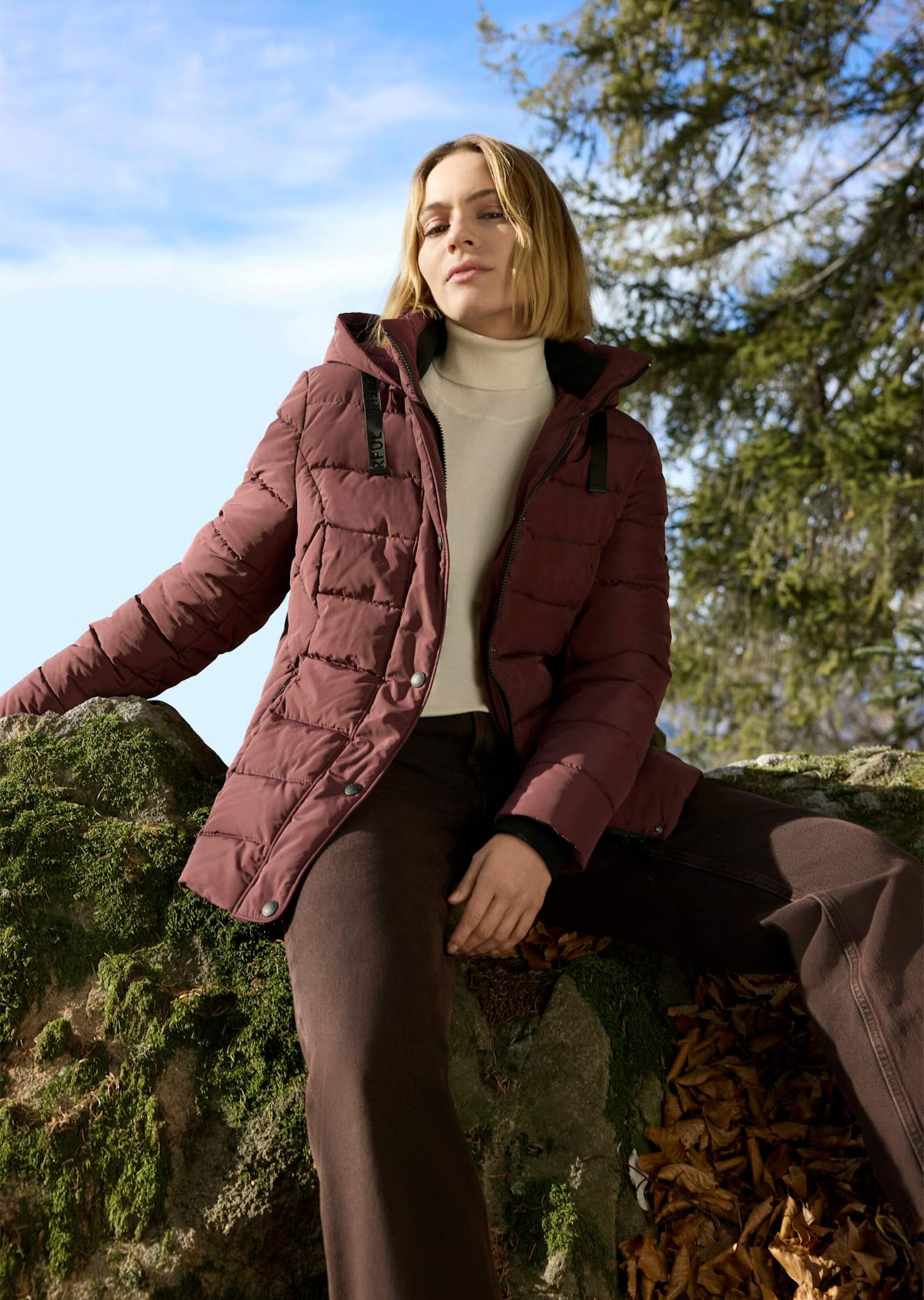 Gewatteerd jack met capuchon van BARBARA LEBEK – dik gevoerd met een donsvrije, onderhoudsarme wattering houdt dit model u ook op koude dagen aangenaam warm. Het actief ademende, winddichte en waterafstotende materiaal biedt extra bescherming tegen onstuimig weer! Met een opstaande kraag en afneembare capuchon. Deelnaden zorgen voor een elegante pasvorm. Met stof tegengevoerde ritssluitingen aan beide kanten opzij bieden vrouwelijke rondingen meer bewegingsvrijheid. Praktisch: de 2-wegritssluiting met drukknopenlijst, twee gevoerde zakken met ritssluiting en een zakje in de voering. Lengte ca. 74 cm in maat 46.