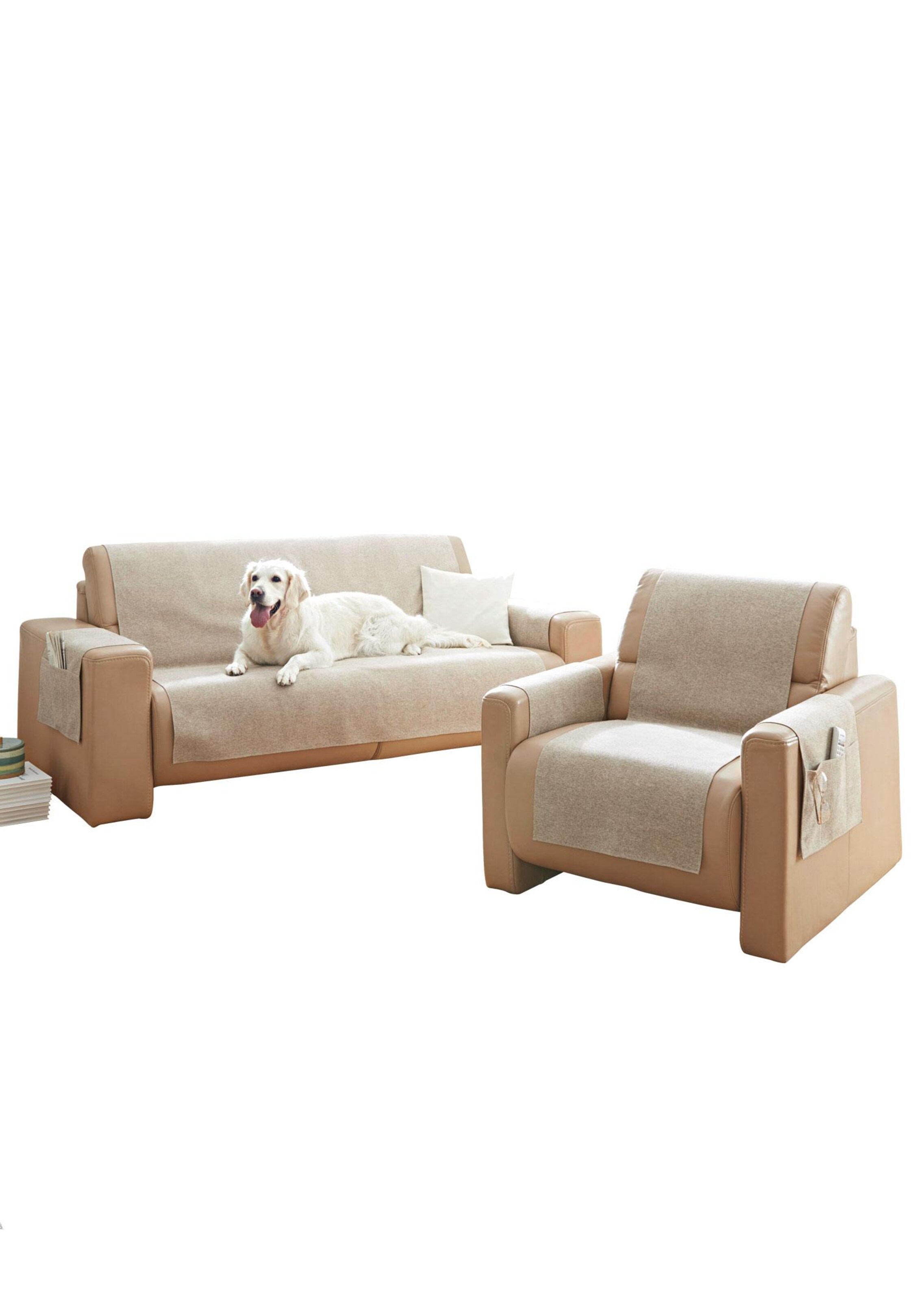 Fauteuil- en bankhoezen van DOHLE + MENK. Het huidvriendelijke materiaal biedt uw meubelen uitstekende bescherming en is bovendien ook uiterst onderhoudsvriendelijk. Door de waterafstotende Teflon-uitvoering dringen vloeistoffen niet in het weefsel en kunnen gewoon afgeveegd worden. Bovendien is het materiaal ongevoelig voor krassen en daardoor ideaal als u huisdieren hebt. Geschikt voor alle gangbare bankmodellen en afmetingen. Eén van de armleuningbeschermers is voorzien van vakken.