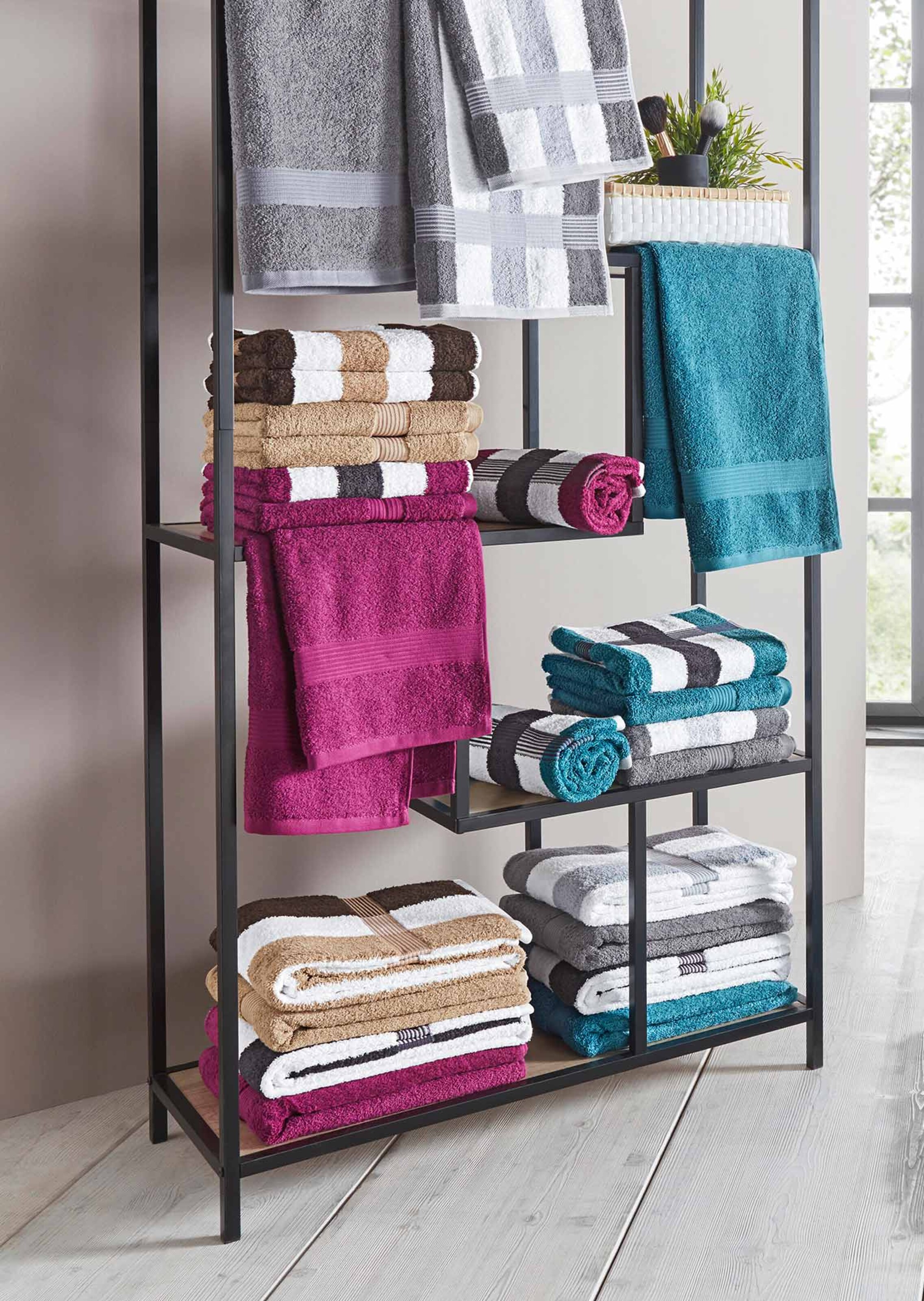 Badstofset NEW YORK van GÖZZE die inspireert met zacht en volumineus materiaal. De heerlijk zachte katoen (gewicht ca. 550 g/m²) is slijtvast en bijzonder absorberend. Effen kleuren en de streepdessins bieden een verscheidenheid aan ontwerpmogelijkheden. Het materiaal is gecontroleerd op schadelijke stoffen en volgens de Öko-Tex100-standaard gecertificeerd. Handdoeken in set van 4 (2x effen, 2x gestreept), badhanddoeken in set van 2 (1x effen, 1x gestreept).