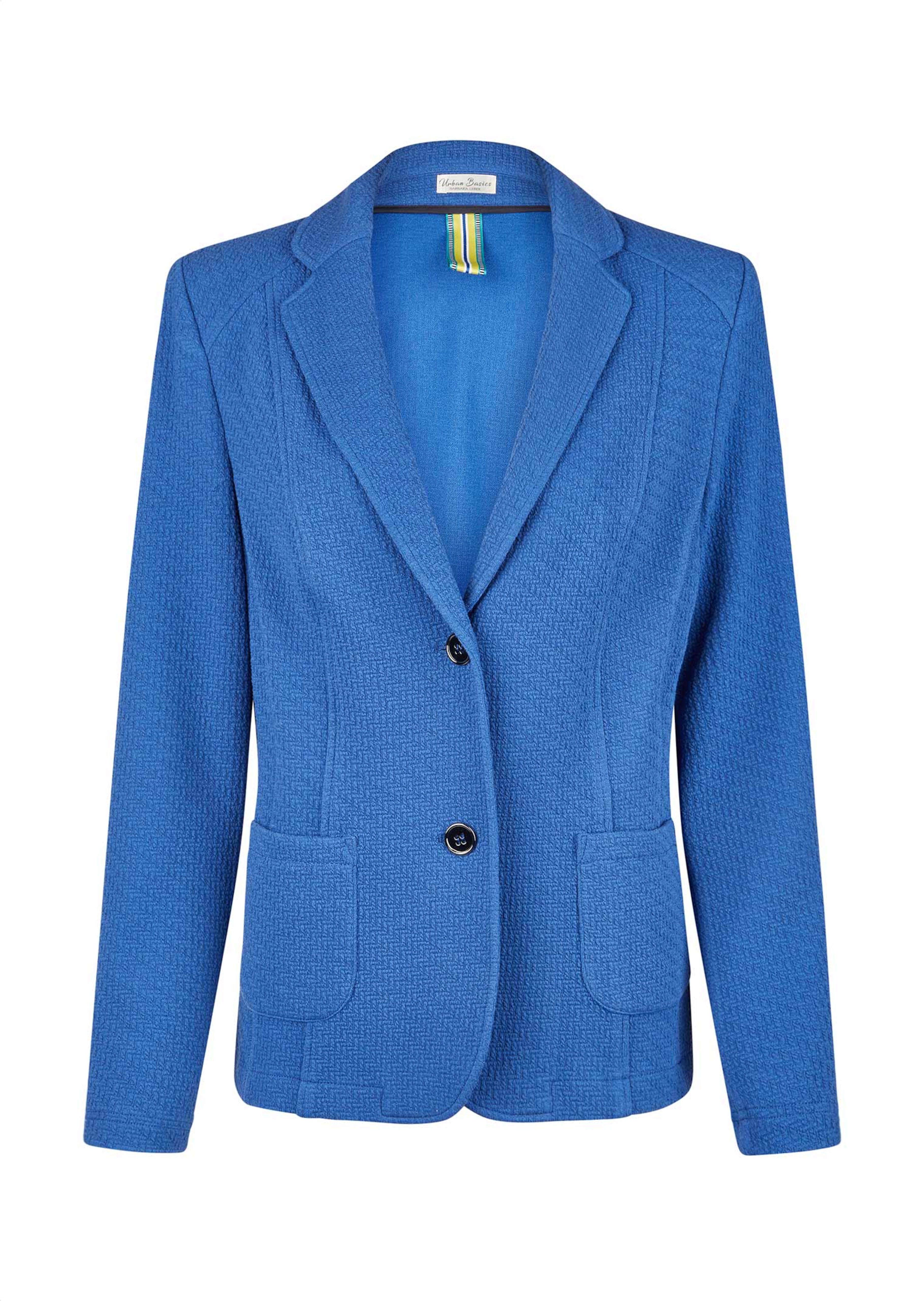 Jersey blazer van BARBARA LEBEK van comfortabel elastische structuurjersey – ideaal voor bijzondere gelegenheden of stijlvolle momenten in het dagelijks leven. Elegante pasvorm met vormgevende deelnaden, reverskraag en glanzende knoopsluiting. Twee opgestikte zakken geven het ongevoerde model een sportief accent. Lengte ca. 66 cm in maat 46.