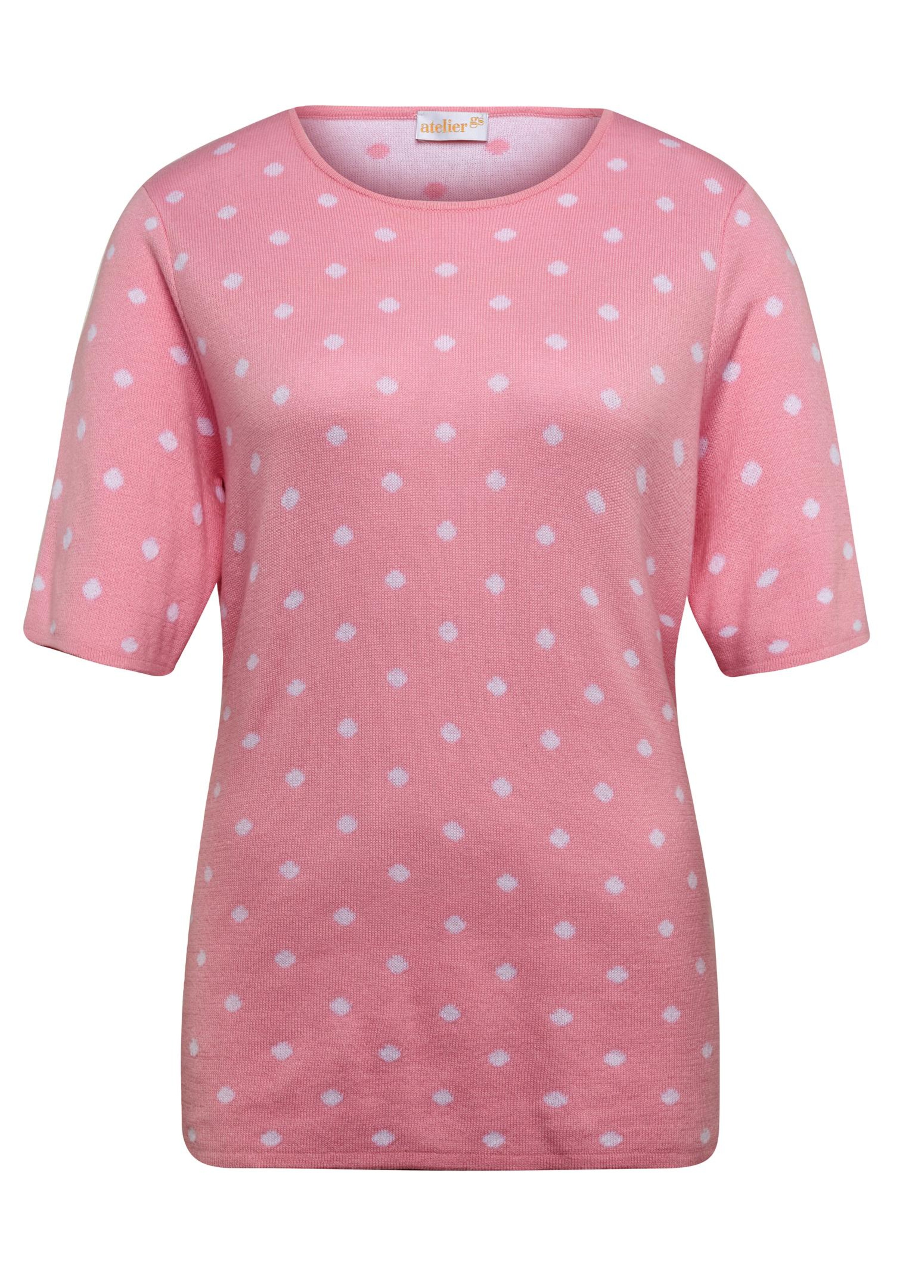 Jacquardpullover met korte mouwen, in een heerlijk comfortabele katoenmix. De hoogwaardige, zachte uitvoering zit aangenaam op de huid en is heel comfortabel. Combinatie van dubbele jacquardtricot en een klassiek stippendessin – het resultaat mag gezien worden: de moderne look van dit mooie model met ronde hals is een aanwinst voor elke garderobe. Lengte ca. 67 cm in maat 46, ca. 63 cm in maat 23.