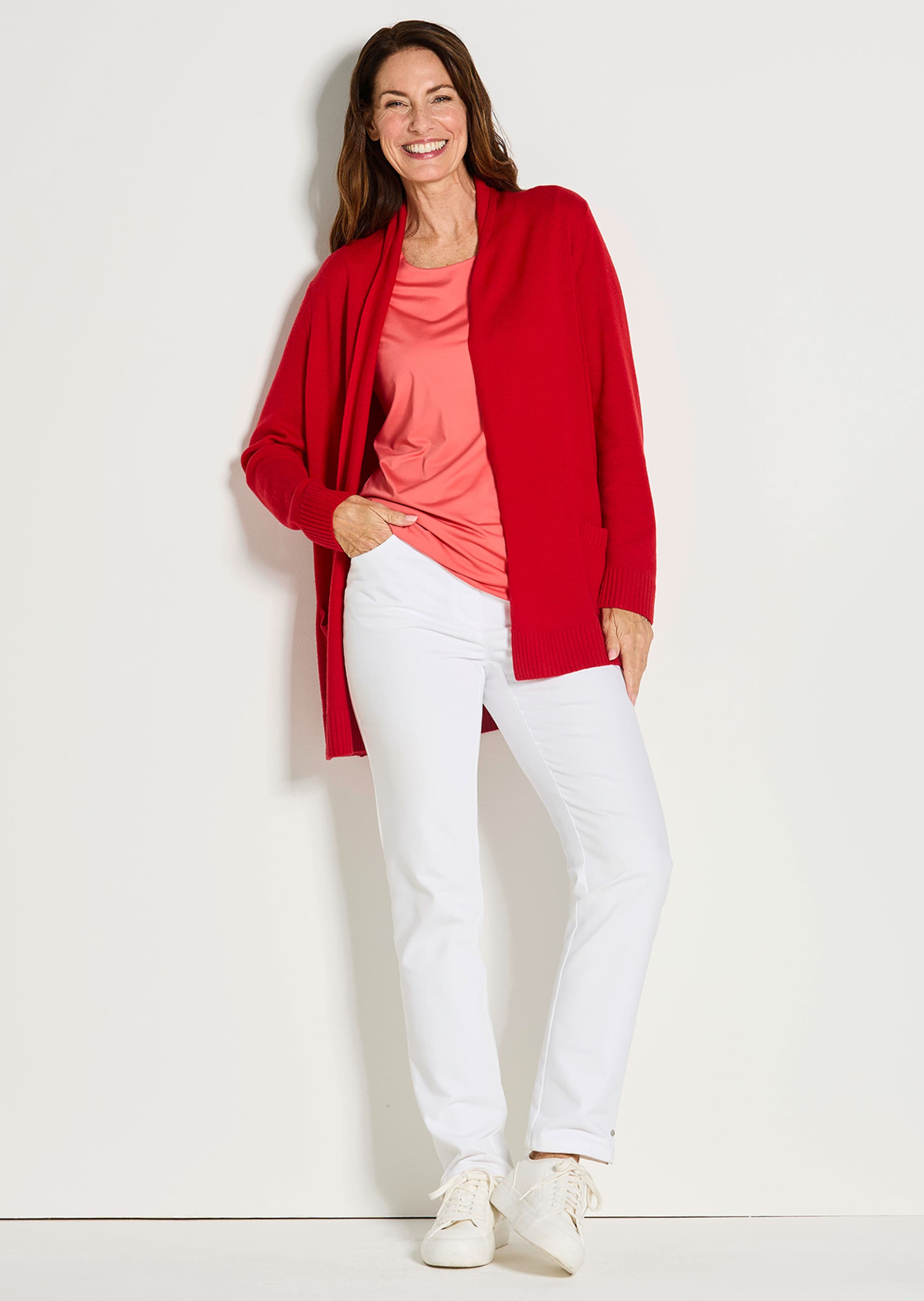 Tricot jasje in een ruimvallend, lang model. Heeft alles in zich om uw nieuwe lievelingsjasje voor elke dag te worden, want deze mooie blikvanger is snel aan te trekken en waardeert iedere outfit in een oogwenk op. Van bijzonder hoogwaardige merinowol. Het jasje zorgt voor uitstekend draagcomfort, omdat het de temperatuur reguleert en ook omdat het superzacht op de huid is. Flatteuze pasvorm met een sjaalkraag die u langer laat lijken en opgestikte zakken. Lengte ca. 75 cm in maat 46, ca. 71 cm in maat 23.