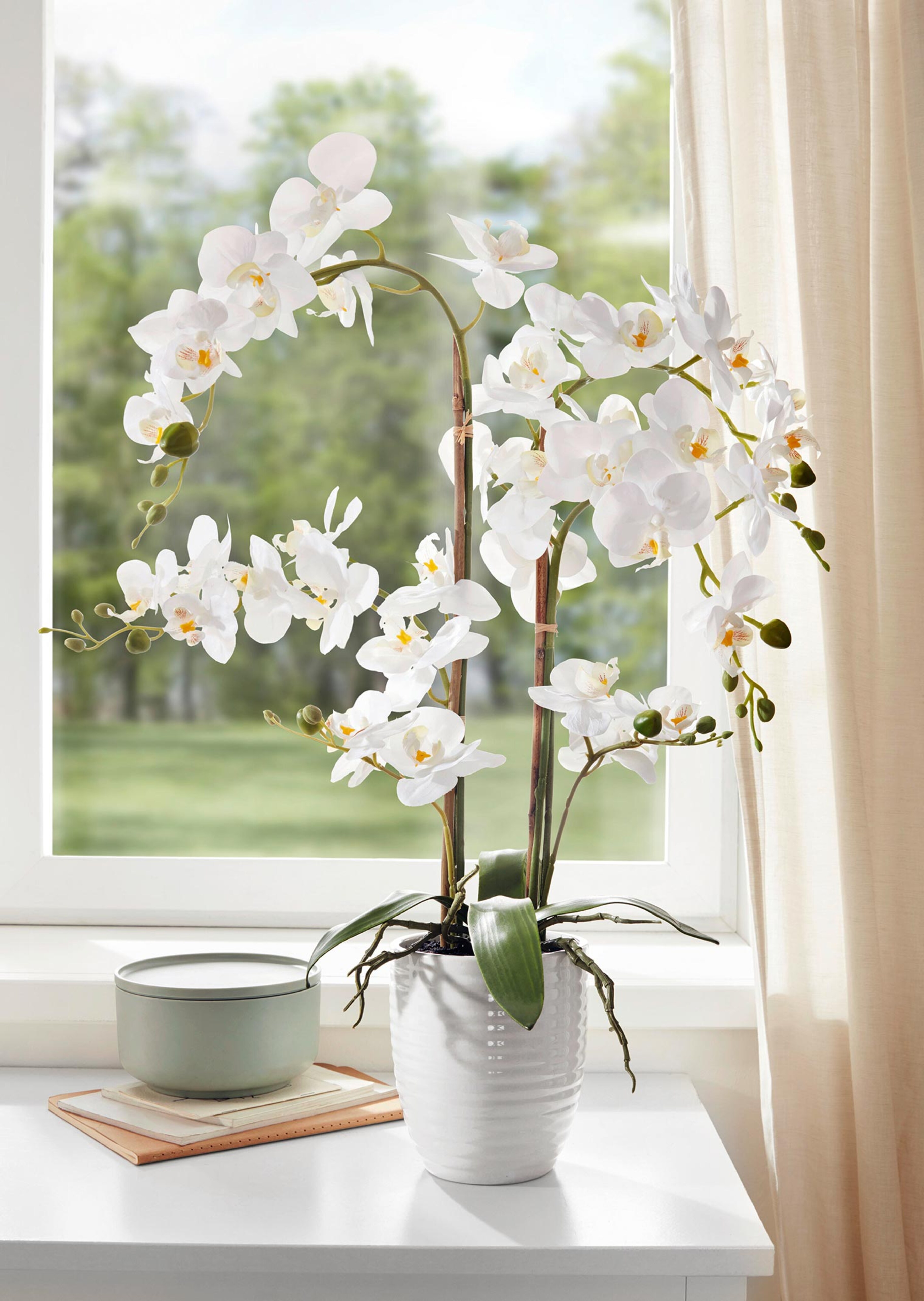 De schitterende vlinderorchidee fascineert door de weelderige bloemenpracht met real touch-effect en is bijna niet van echt te onderscheiden. De vlinderorchidee staat stevig in de bijpassende keramieken pot (ø ca. 13 cm) en is tijdloos mooi, veelzijdig te decoreren en ook ideaal als cadeau.