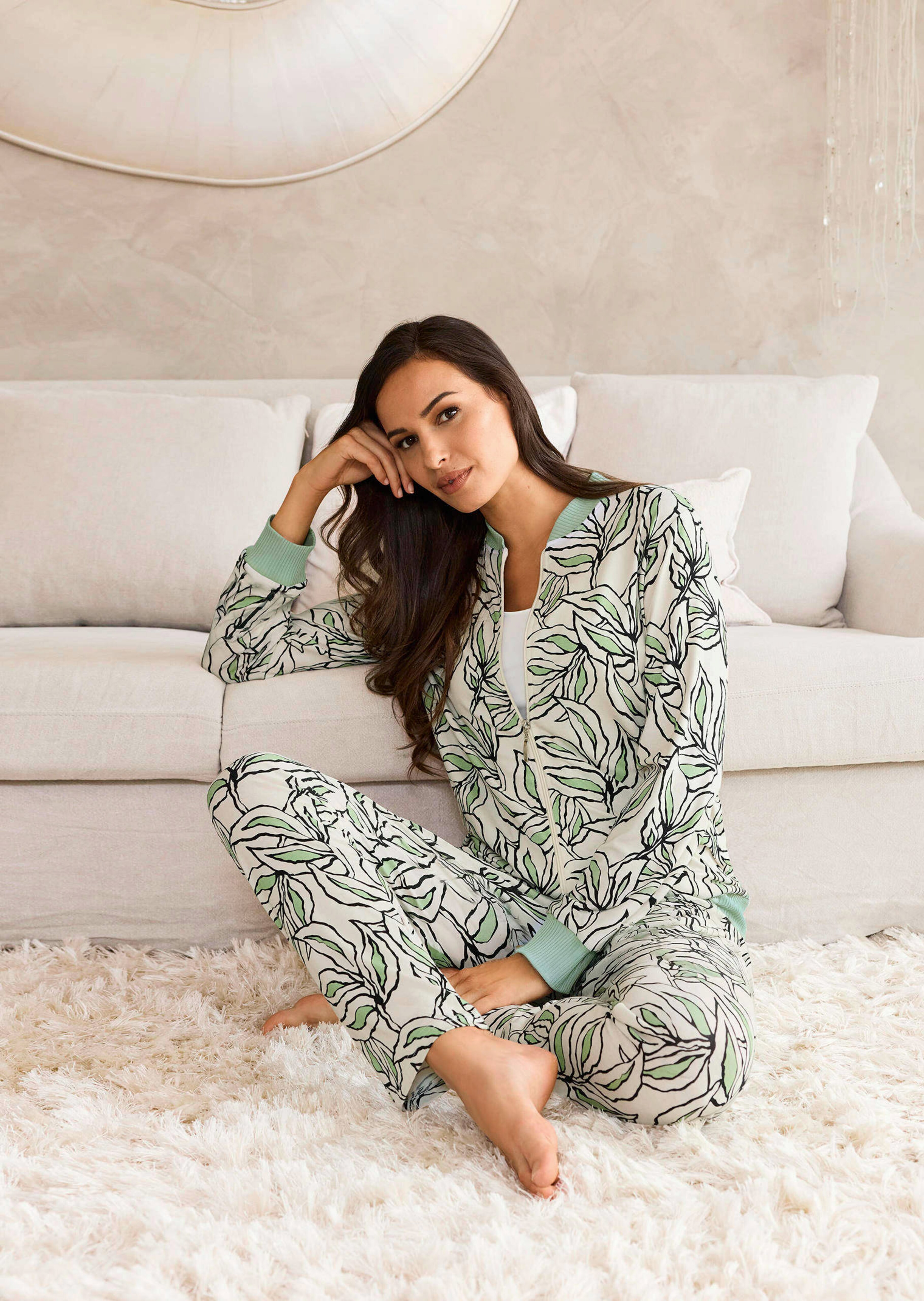 Het vrijetijdspak van COMODO zorgt voor een ontspannen look. Het jasje in blousonmodel met ritssluiting en opstaande kraag heeft zachte ribboorden van katoen met Elastan voor een perfecte pasvorm. De broek zit losjes en comfortabel dankzij de rondom elastische tailleband met tunnelkoord. Twee steekzakken ruimte bieden voor kleine spullen. De zachte jersey van viscose met Elastan voelt aangenaam aan op de huid, is actief ademend en blijft mooi in model. Een modieuze print allover rondt de ontspannen vrijetijdslook af.