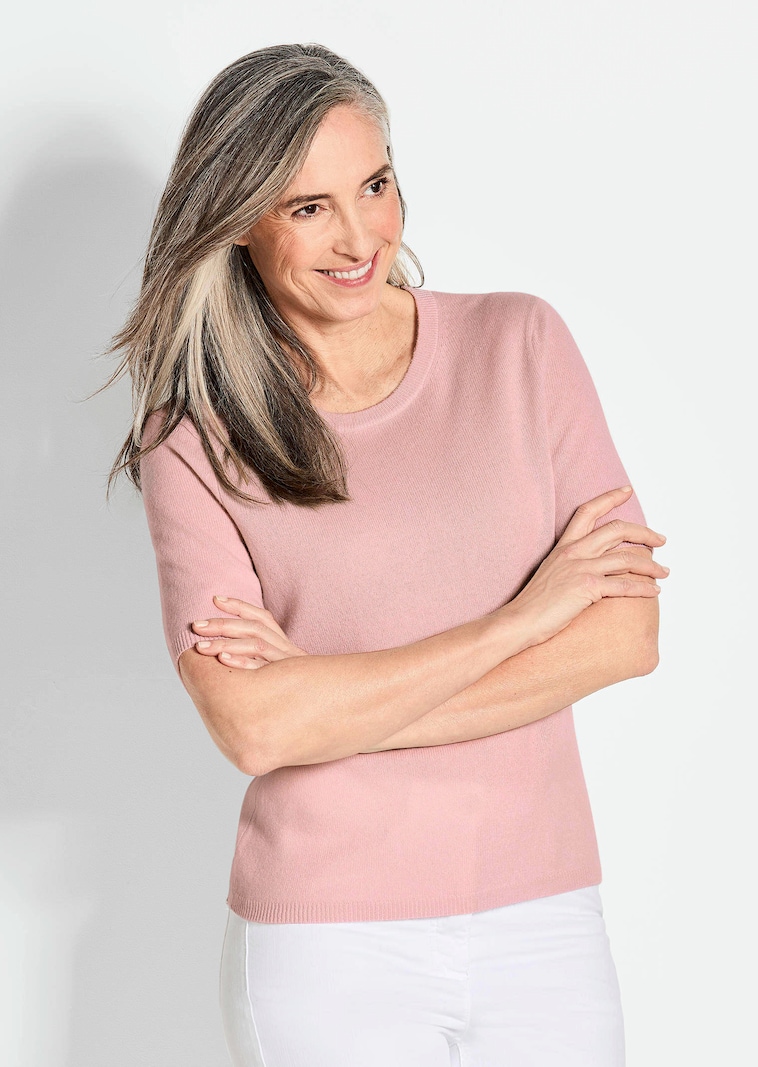 Pullover van kasjmier met korte mouwen en ronde hals