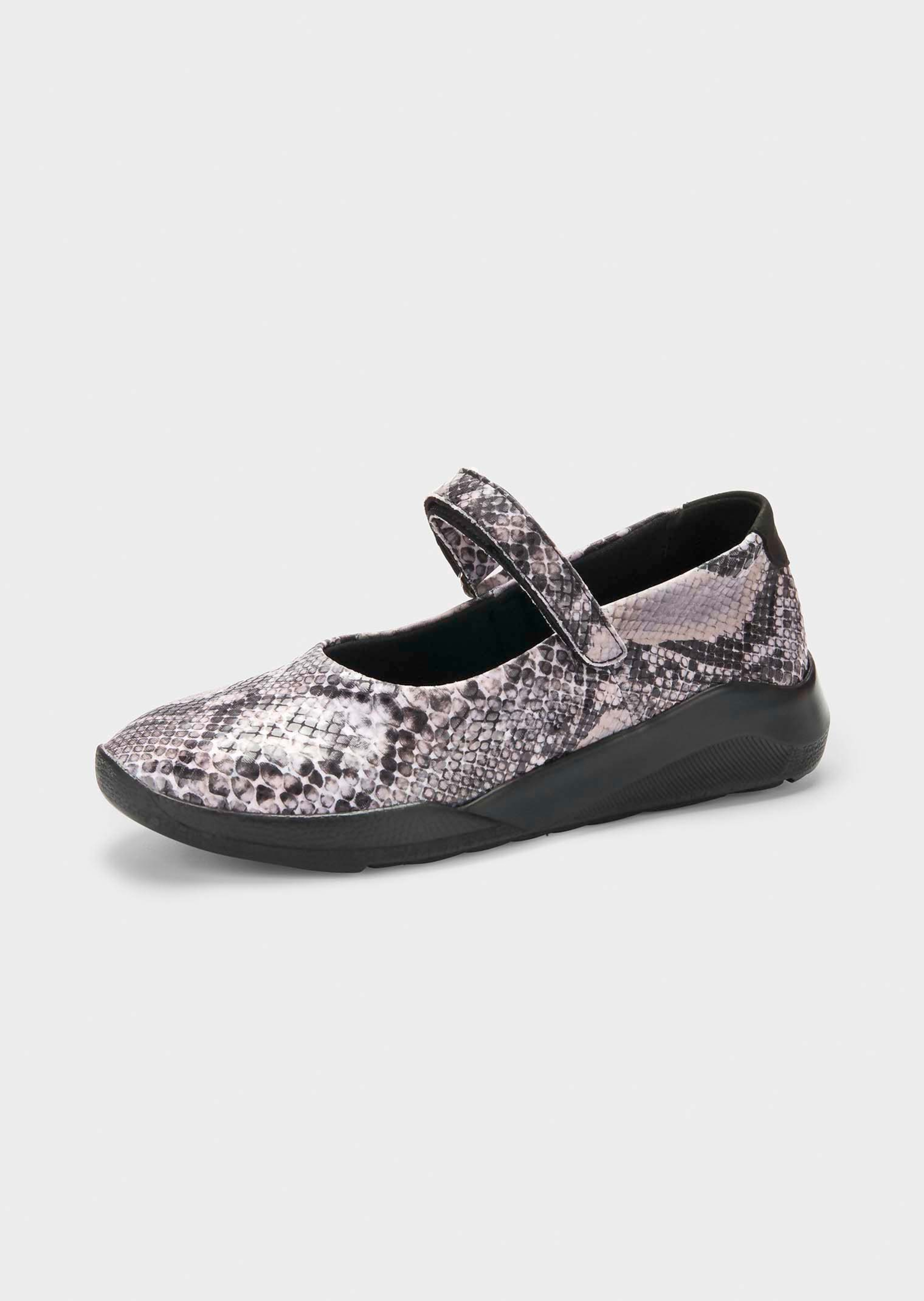 Ballerina in modischem Animal Print. Verstellbares Riemchen mit Klettverschluss – bequem zum Anziehen, für optimalen Halt. Komplett aus Textil gearbeitet, Obermaterial mit Stretch. Wechselfussbett und flexible PU-Laufsohle.