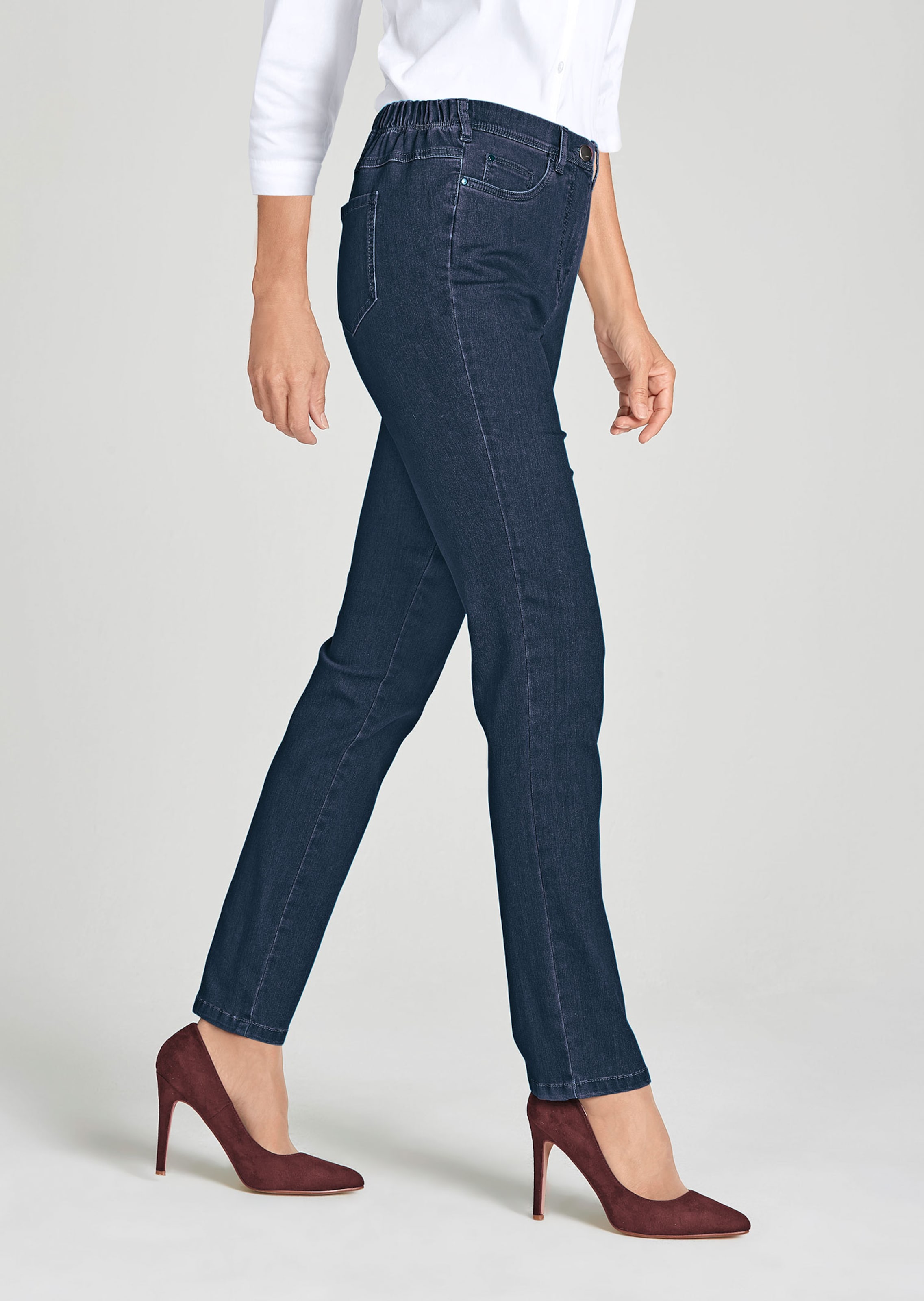 High-Stretch-Jeans LOUISA mit flexiblem Rückendehnbund – vorne ist sie glatt, um nicht aufzutragen. Hinten liegt sie optimal an! Die superelastische, hochwertige Denim-Qualität ist herrlich weich, in jede Richtung dehnbar und schenkt jeder Figur die perfekte Passform. Sie macht jede Bewegung mit, ohne die eigene Form zu verlieren oder auszubeulen. Modischer 5-Pocket-Stil. Saumweite ca. 38 cm. Schmaler Beinverlauf.