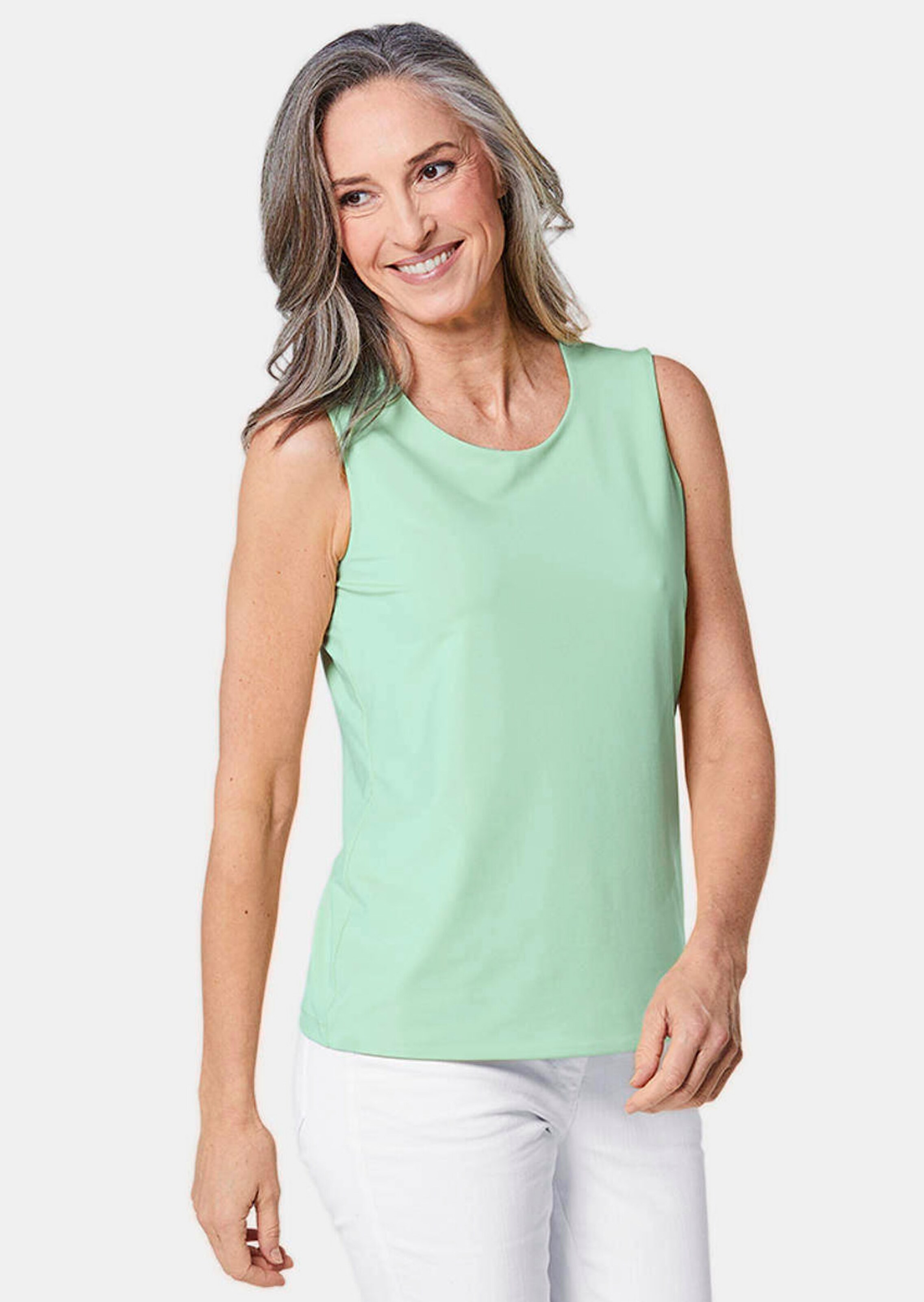 Top aus hochwertiger Microfaser – weich, stretchbequem und formbeständig. Das Vorderteil ist doppellagig gearbeitet, so zeichnet sich nichts ab. Das kombistarke Modell ist äusserst pflegeleicht, denn es punktet mit seiner unkomplizierten Waschen-Trocknen-Anziehen-Qualität – ideal auf Reisen da sehr knitterarm. Länge ca. 66 cm in Gr. 46, ca. 62 cm in Gr. 23.