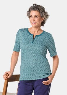 Shirt mit modernem, grafischem Dessin und sportlichem Reissverschluss am Rundhalsausschnitt. Die unifarbene Einfassung ist ein schönes Detail. Dank der hautfreundlichen Jersey-Jacquard-Qualität mit viel Viskose trägt sich das angenehm glatte Shirt sehr weich auf der Haut. Elasthan gibt dem lässigen Basic die nötige Formstabilität. Länge ca. 67 cm in Gr. 46, ca. 63 cm in Gr. 23.