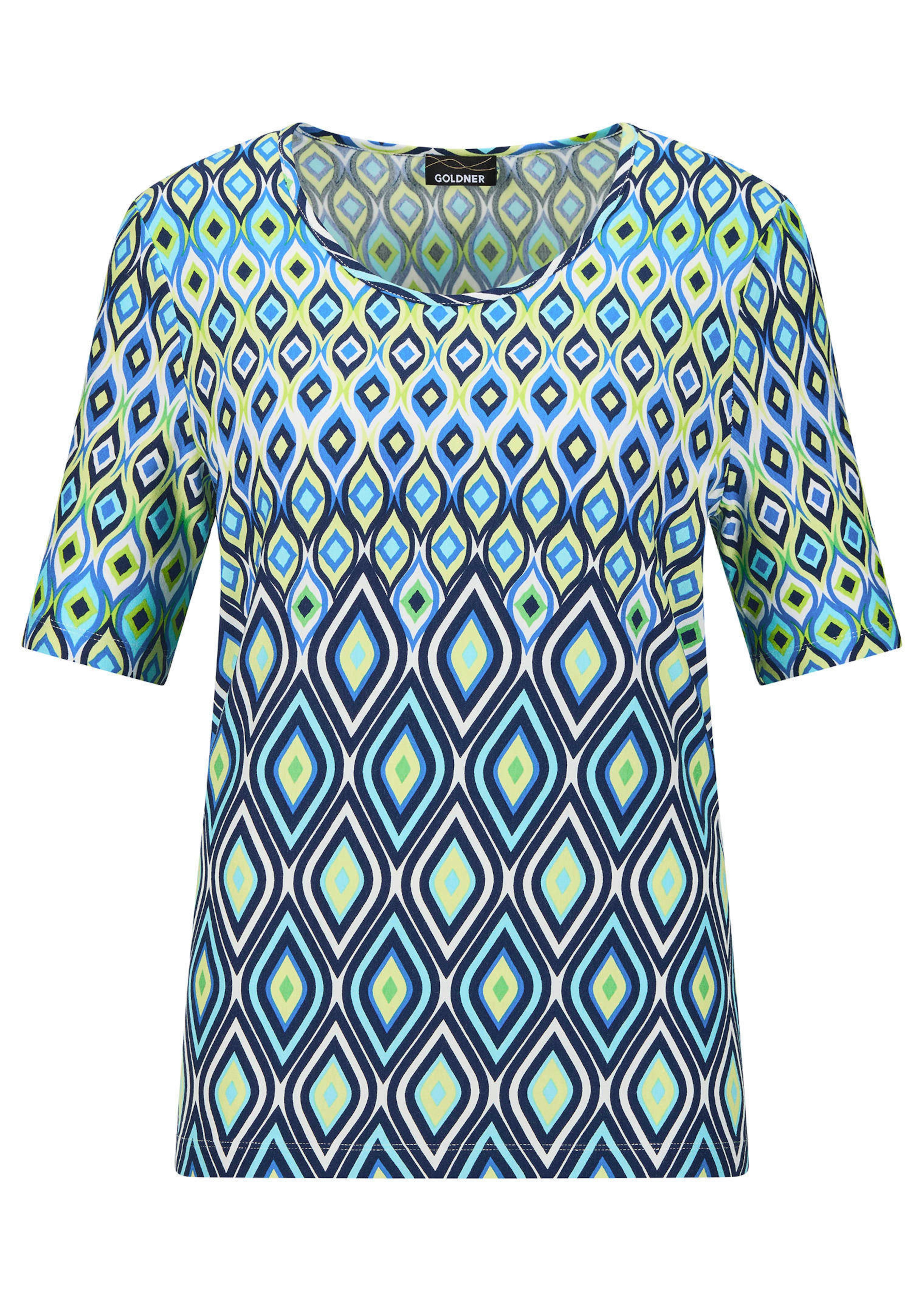 Shirt aus supersofter, stretchbequemer Viskosequalität mit Elasthan. Das symmetrische Allovermuster vergrössert sich zum Saum hin, was dem Modell eine figurschmeichelnde Optik verleiht. Mit Rundhalsausschnitt und halblangen Ärmeln. Länge ca. 64 cm in Gr. 46, ca. 60 cm in Gr. 23.