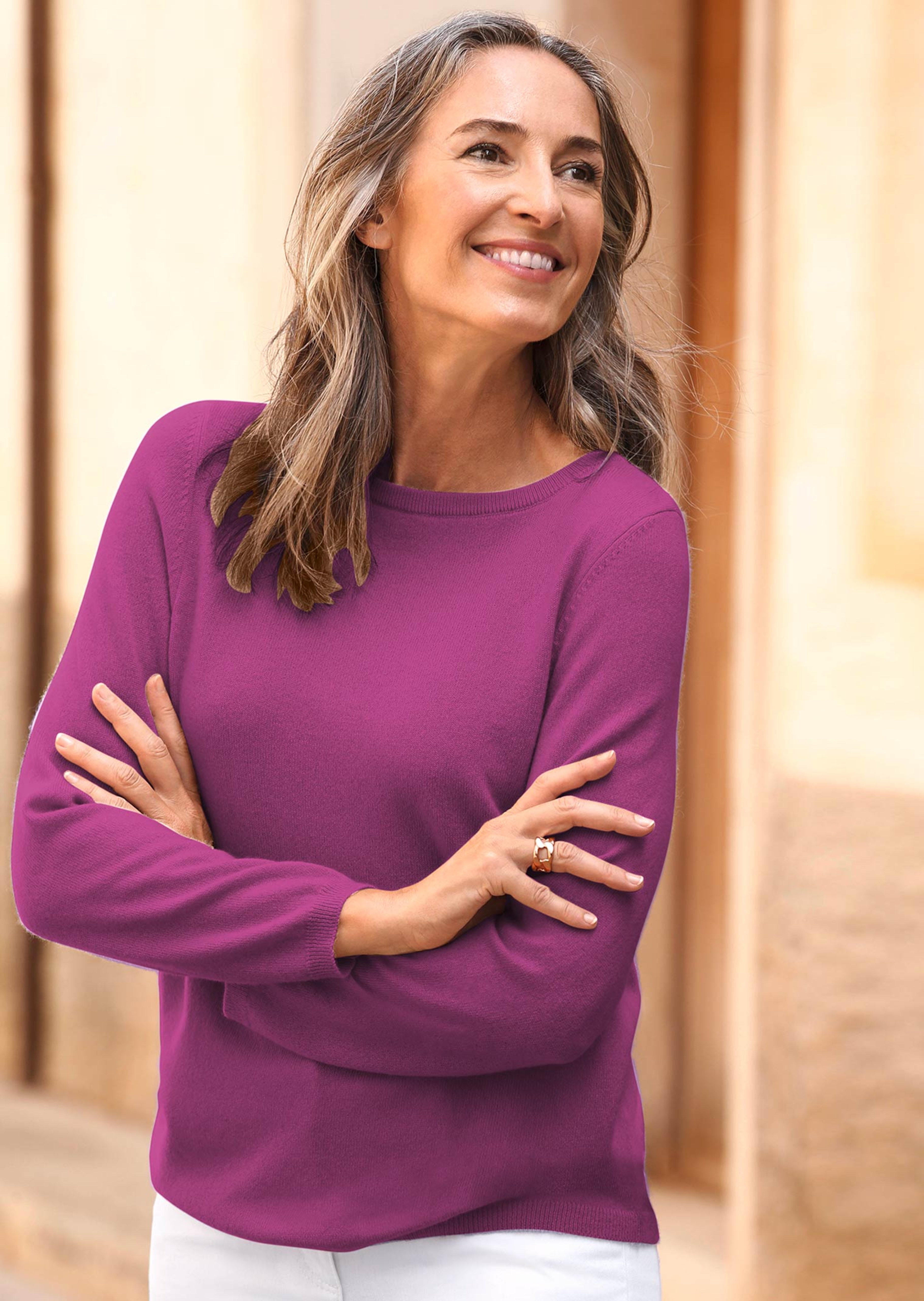 Kaschmirpullover mit femininem U-Boot-Ausschnitt und filigranen Rippenabschlüssen an den Säumen. Kuschelweich dank reinem Kaschmir in Feinstrickqualität: temperaturausgleichend und atmungsaktiv. Geniessen Sie mit diesem Hautschmeichler gewohnt beste Passform. Länge ca. 67 cm in Gr. 46, ca. 63 cm in Gr. 23.