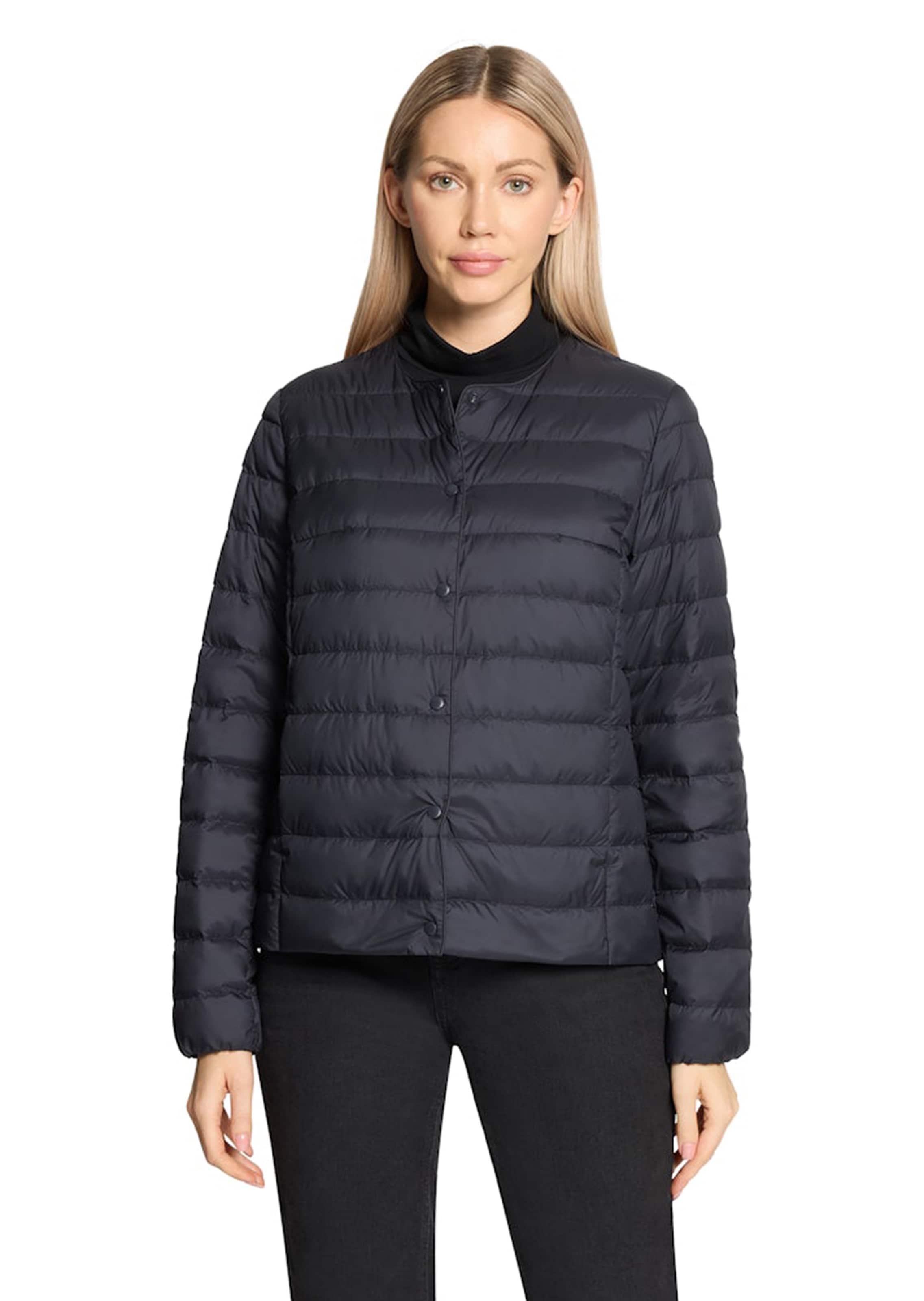 Daunen-Steppjacke von BETTY BARCLAY – das perfekte Übergangsmodell, das Sie zuverlässig vor einer kühlen Brise schützt, ohne zu beschweren. Extra leicht und dünn gefüllt mit Daunen und Federn lässt sie sich überall mit hinnehmen und passt in jede Tasche! Wiener Nähte sorgen für perfekten Sitz, die durchgehende Druckknopfleiste macht das Zuknöpfen leicht. Mit Rundhalsausschnitt, Nahttaschen und einer Futterinnentasche. Länge ca. 66 cm in Gr. 46.