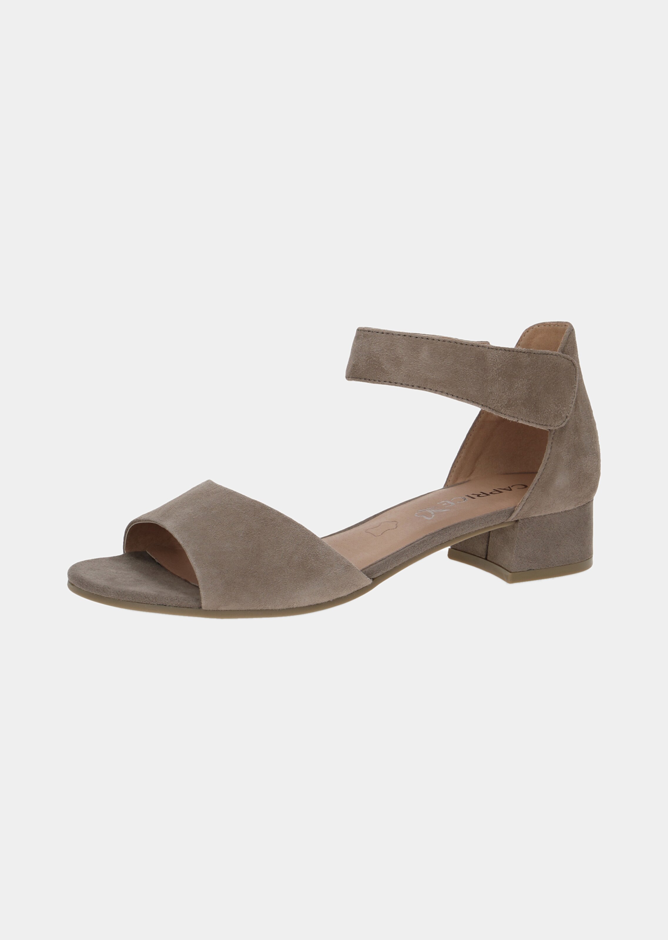 Leder-Sandale von CAPRICE mit viel Chic. Der Klettverschluss gibt sicheren Halt, die Lederdecksohle sorgt für angenehmen Tragekomfort. Die trittsichere Laufsohle mit Blockabsatz und die geschlossene Ferse machen die schöne Optik perfekt.
