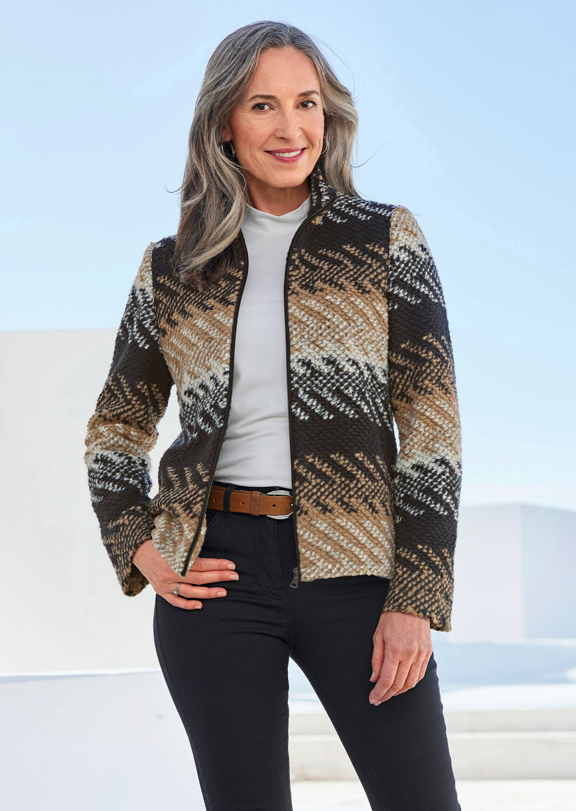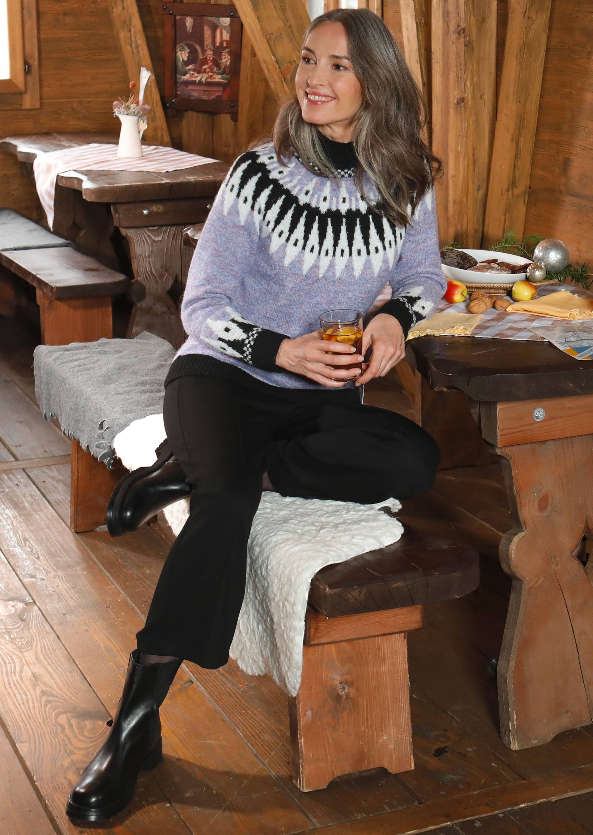 Der Pünktchen-Look von Kopf bis Fuß wirkt feminin, aber dennoch nicht mädchenhaft. Das liegt zum einen an der dunkelblauen Farbe, zum anderen an den lässigen Schnitten: Die weite Palazzohose und die zarte Chiffonbluse umspielen die Figur geschickt. Mit marineblauen Sandalen und der passenden Jacke bekommen Sie für dieses Outfit die volle Punktzahl!