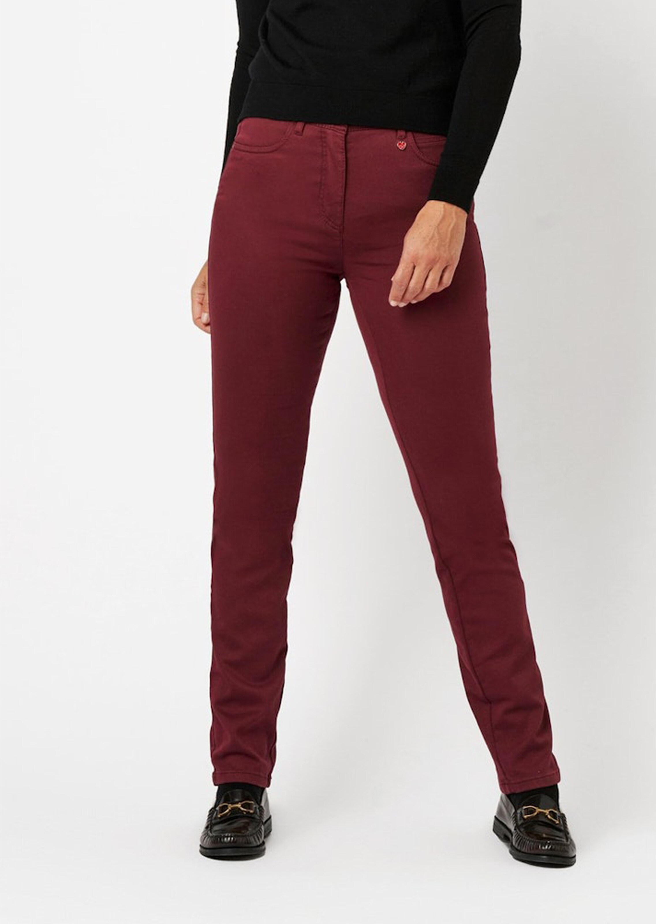 Hose "Meine beste Freundin" von RELAXED by TONI aus softem Baumwoll-Stretch im 5-Pocket-Stil. Die Jeans zaubert eine schmale Silhouette, der hohe Bund mit unsichtbarem Gummibund betont die Taille und sitzt wunderbar bequem. Die aufgesetzten Taschen im Rückteil sind mit feiner Stickerei verziert. Mit Soft Touch für eine ganz besondere Haptik. Saumweite ca. 36 cm. Schmaler Beinverlauf.