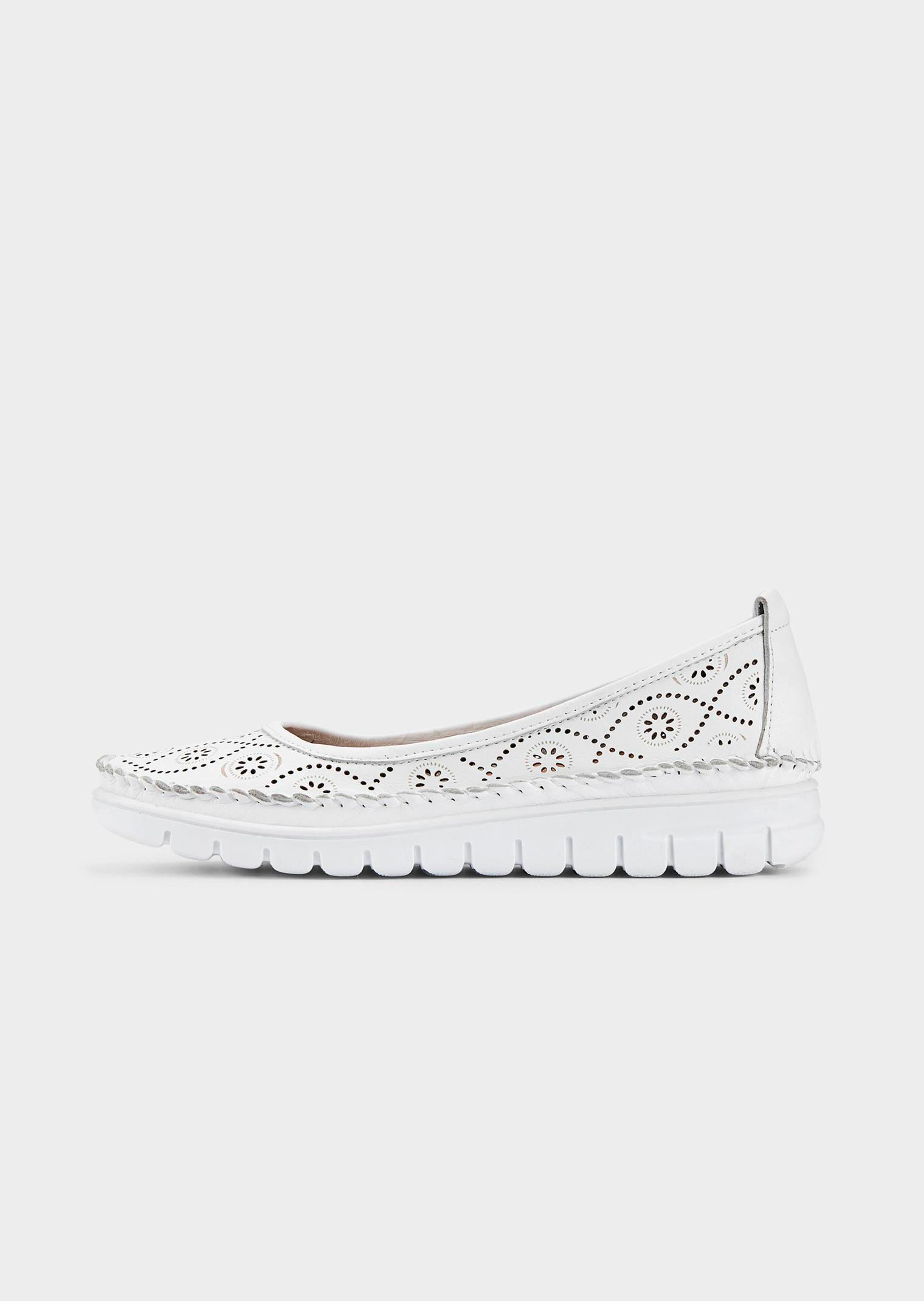 Ballerina aus perforiertem Leder – das elegante Lochmuster verleiht dem Schuh eine feminine Note und macht es leicht und luftig für warme Tage. Mit Wechselfußbett, das Sie ganz einfach gegen eigene Einlagen austauschen können, und in bequemer H-Weite. Flexible TR-Laufsohle.