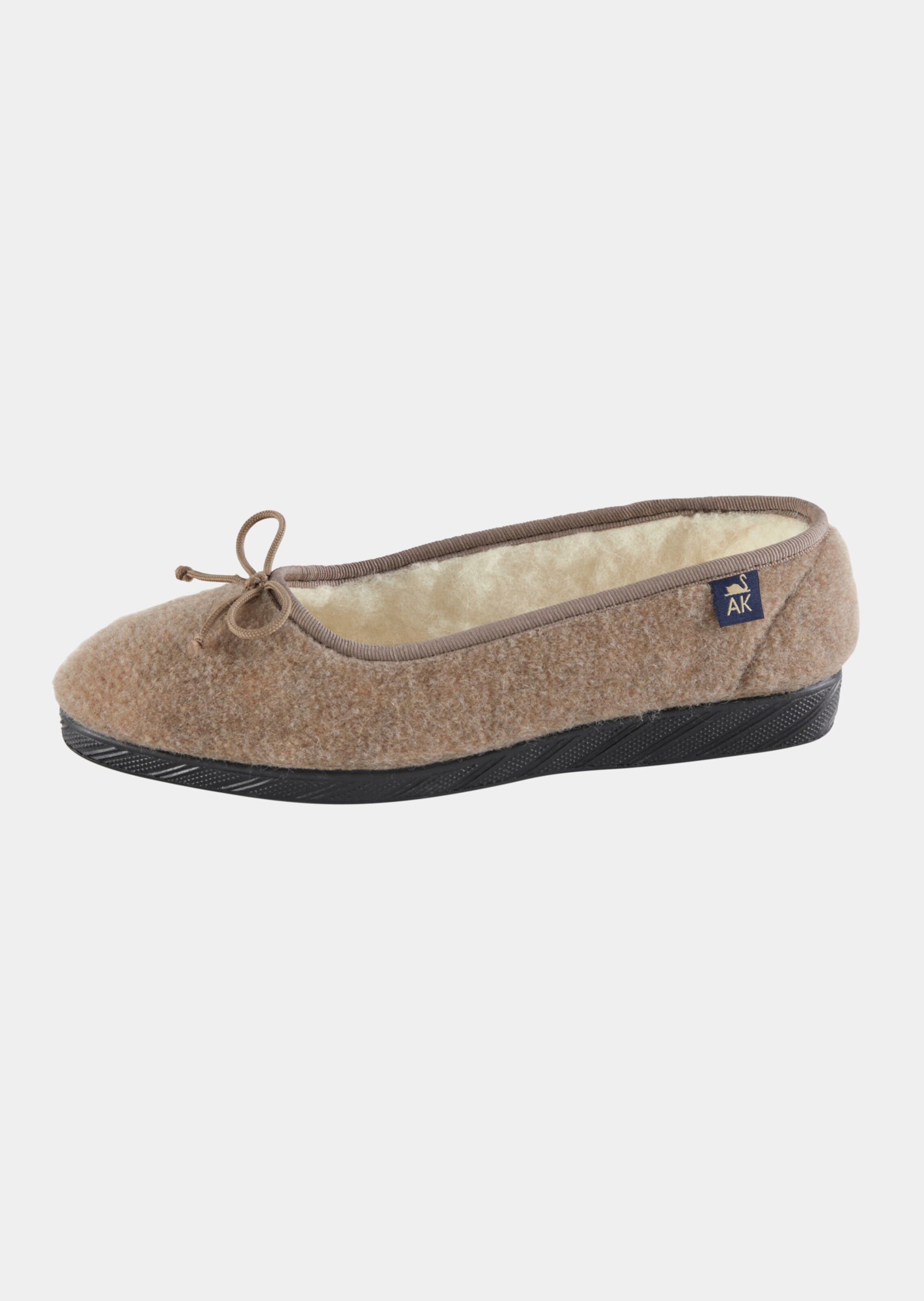 Hausschuhe in F-Weite – schlicht und elegant zugleich. Die schmale Ballerinaform mit feiner Zierschleife verleiht dem Schuh eine feminine Note. Futter und Decksohle aus reiner Schurwolle halten Ihre Füße angenehm warm – perfekt, wenn Sie schnell frieren. Mit einer stabilen Laufsohle sind Sie auch auf glatten Böden sicher unterwegs.