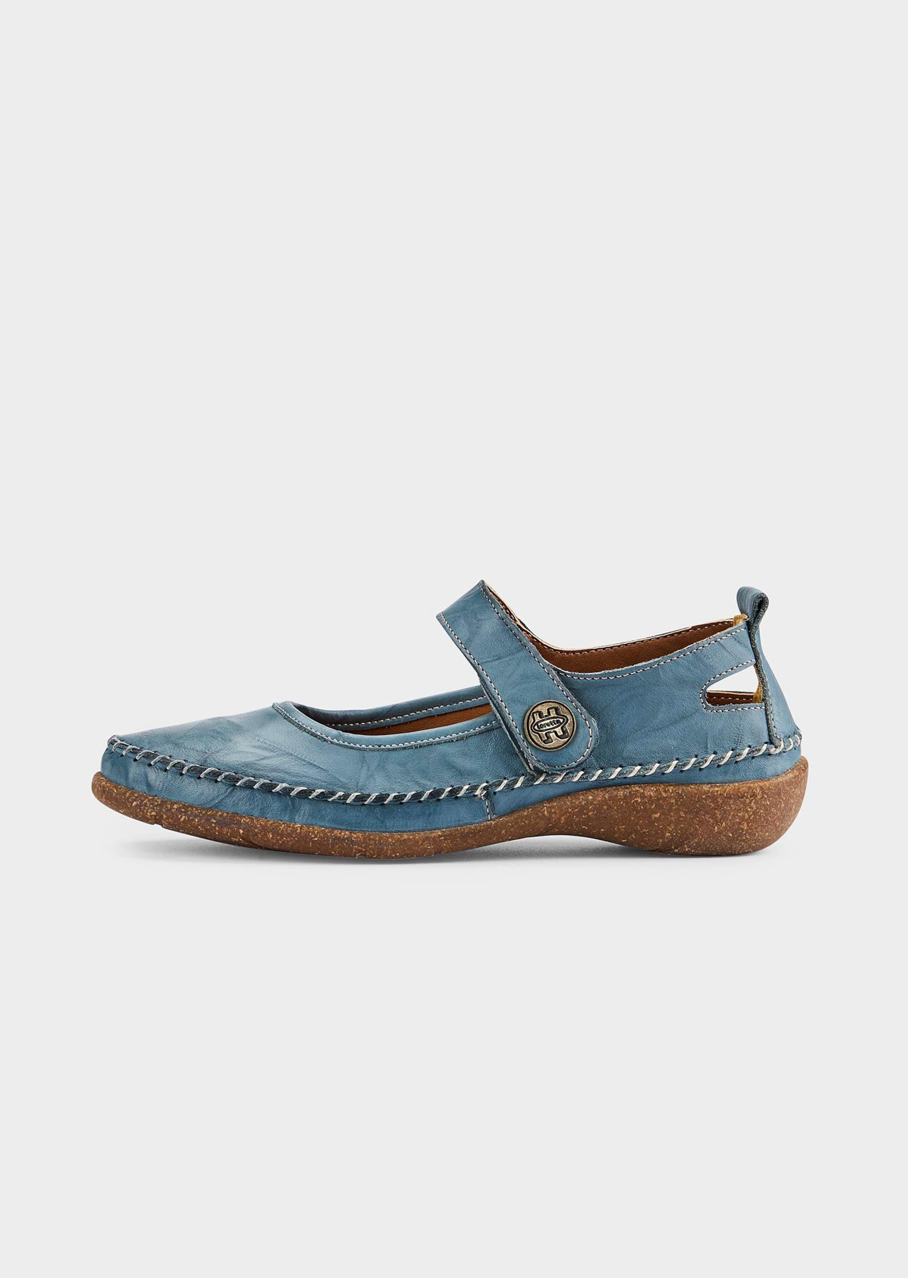 Ballerina von LORETTA in entspannter G-Weite. Das lederne Obermaterial umschließt den Fuß angenehm, während das Innenfutter aus Synthetik und die Lederdecksohle dem Fuß ein sanftes Bett bereitet. Per Klettverschluss können Sie den Riemen mit Zierknopf individuell einstellen, er ermöglicht außerdem ein unkompliziertes An- und Ausziehen. Mit rutschfester TR-Laufsohle ist das Modell nicht nur elegant, sondern auch alltagstauglich.