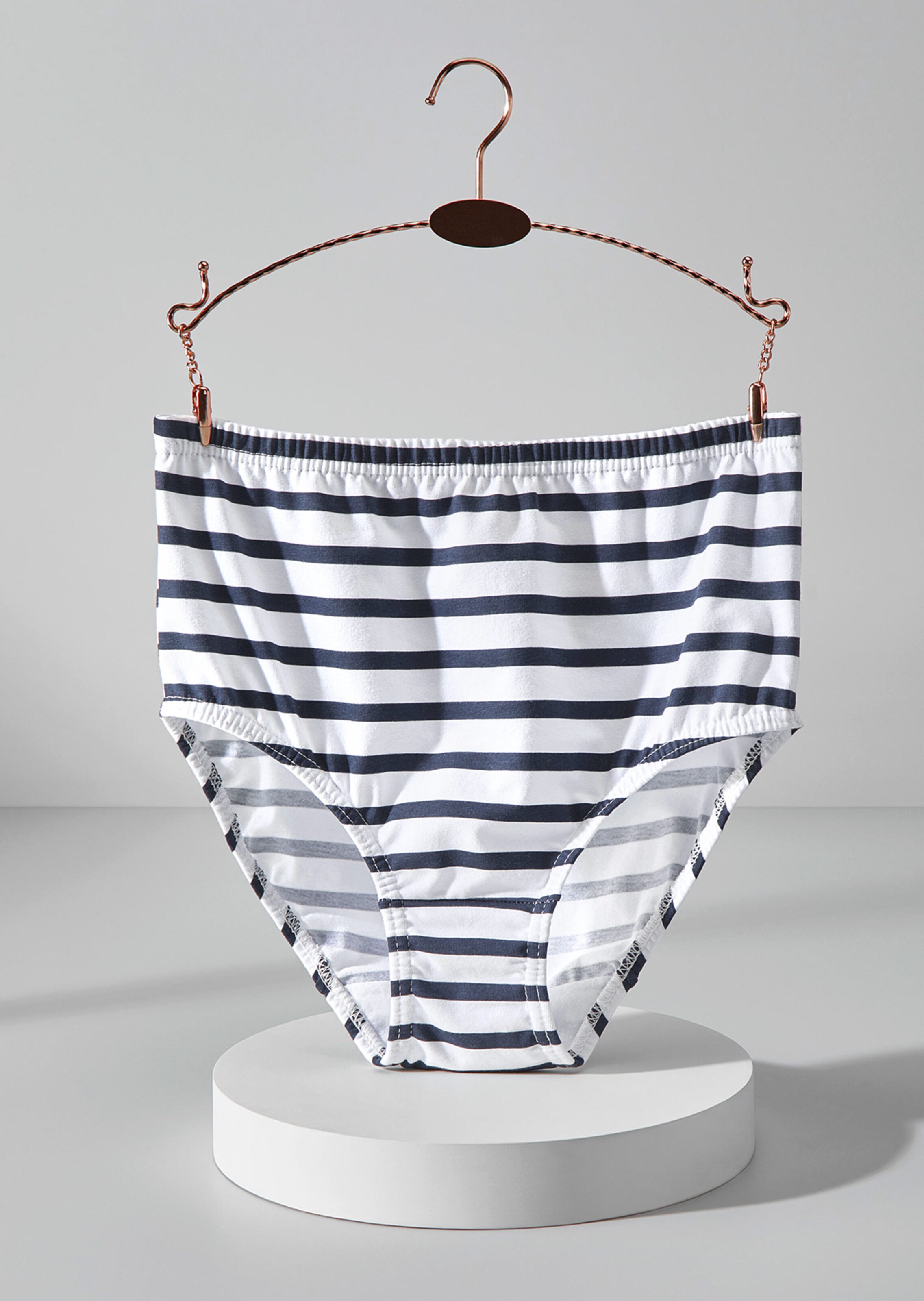 Hüftslip im 7er-Pack – Sie erhalten 4 gestreifte und 3 weiße Slips, perfekt für eine ganze Woche! Angenehmer Tragekomfort in kompakter Passform, der Bund endet ca. zwei Finger breit unter dem Bauchnabel. Mit breiten Seitenbündchen und mäßig hohem Beinausschnitt. Weiche, formstabile Qualität aus Baumwolle und Elasthan. Zwickel doppellagig gearbeitet.