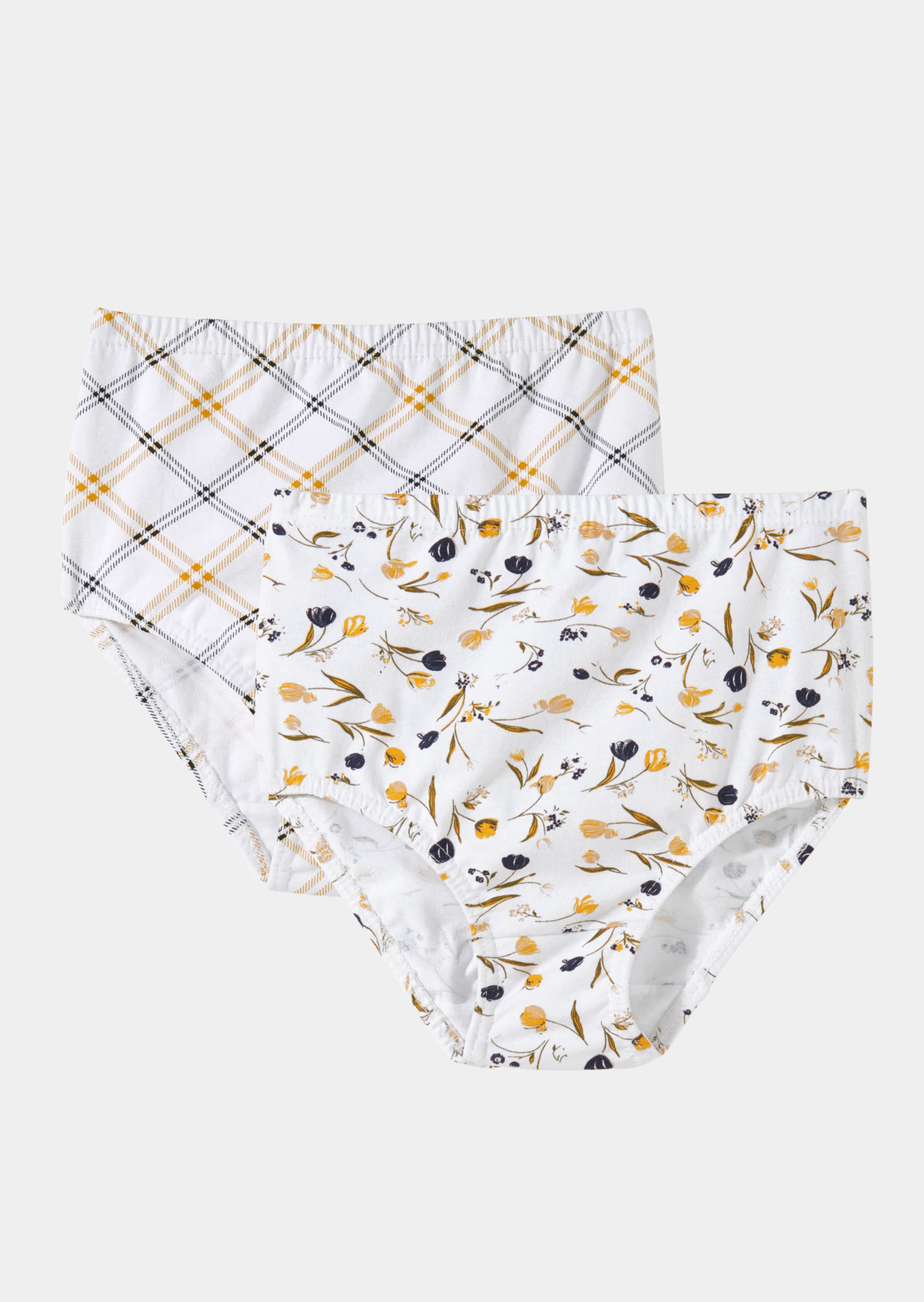 Taillenslip im 7er-Pack bestehend aus zwei geblümten, zwei karierten und einem weißen Modell. Sehr angenehm zu tragen dank weichem Baumwoll-Jersey. Perfekte Passform bis zum Bauchnabel mit sehr breiten Seitenbündchen und geradem Beinausschnitt. Elastische Abschlüsse gewähren Bewegungsfreiheit. Mit doppellagigem Baumwollzwickel.